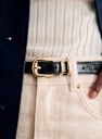 - ライトゴールド仕上げの真鍮製バックル