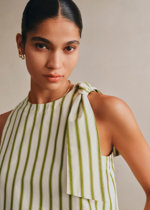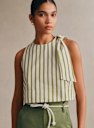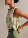 - ストライプ柄コットンポプリン製ノースリーブショートブラウス