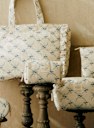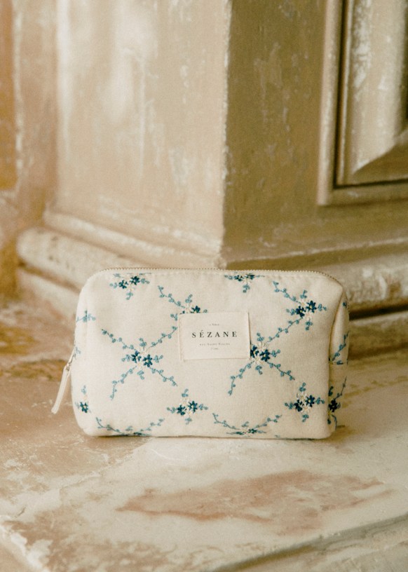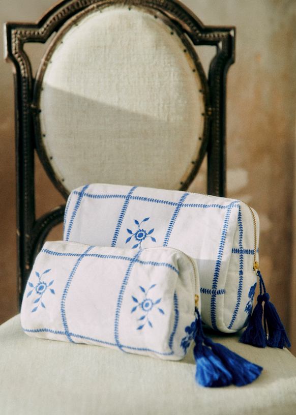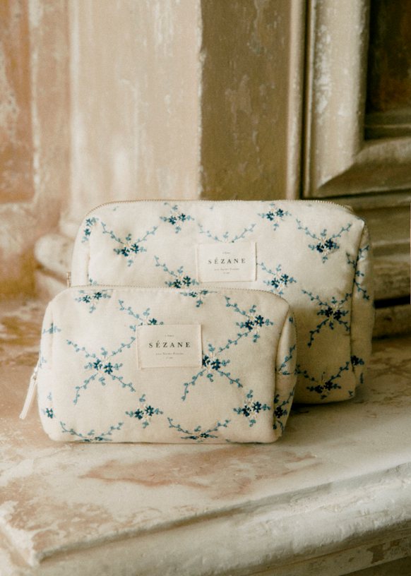 - 麦の穂をモチーフにした刺しゅう入りコットン製ビューティポーチ