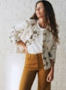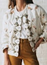 - Korte bedrukte en gewatteerde jas met lange mouwen