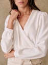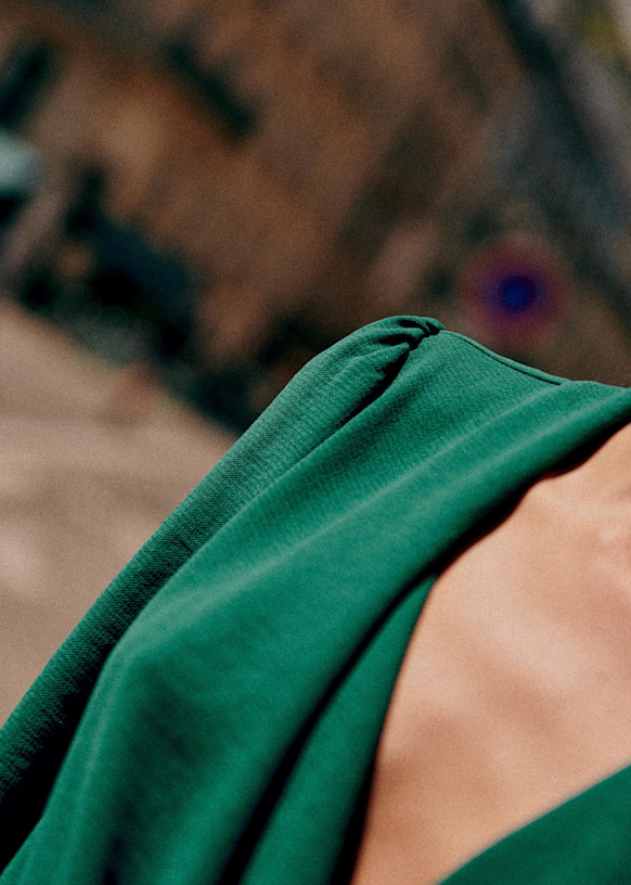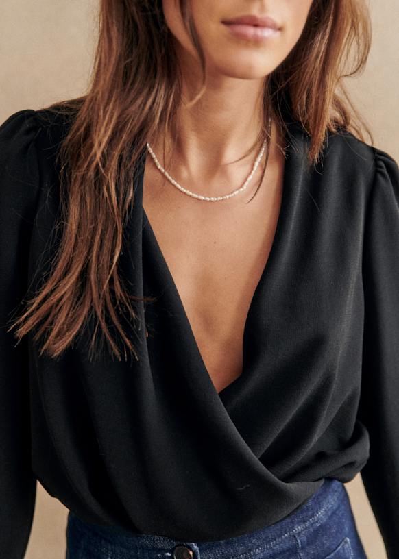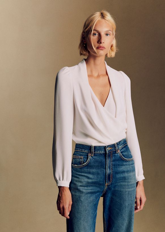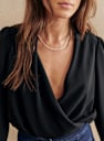 - Gekruiste V-halslijn aan de voorkant, gedrapeerd effect