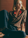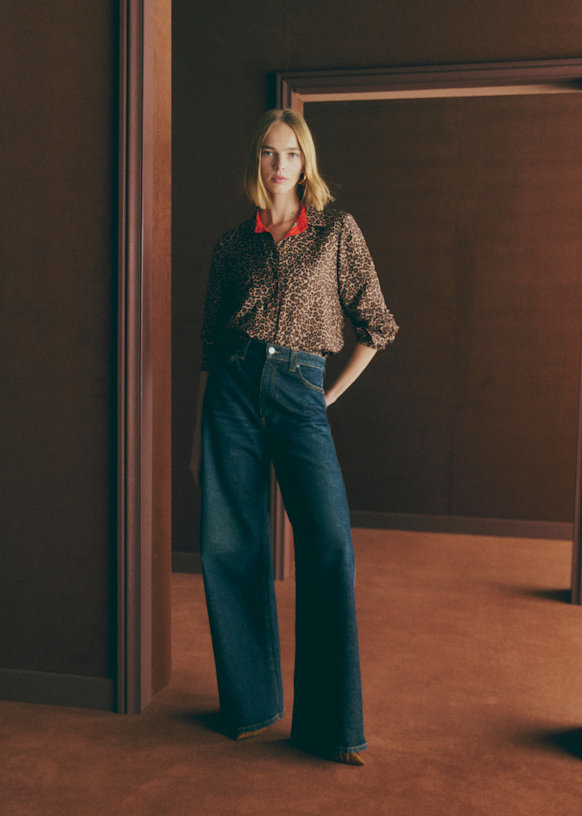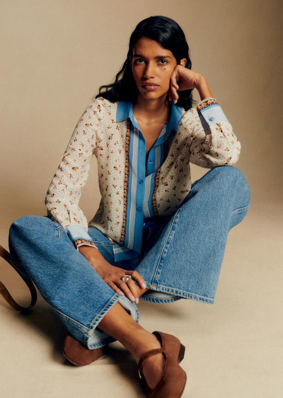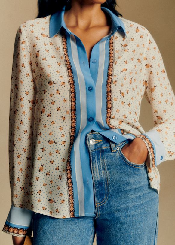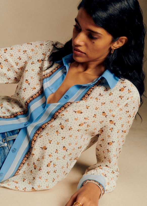 - Blouse van bedrukte viscose en zijde met lange mouwen