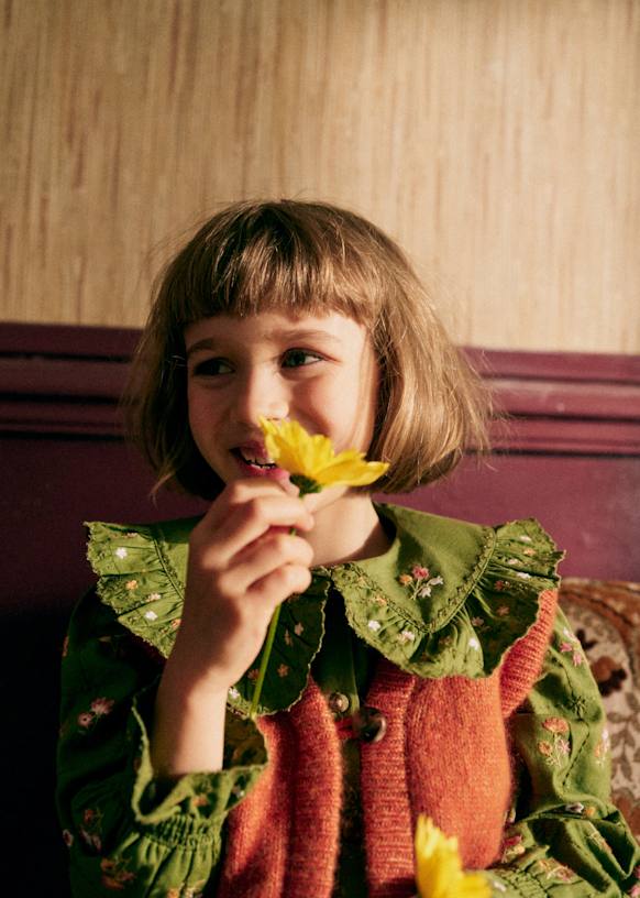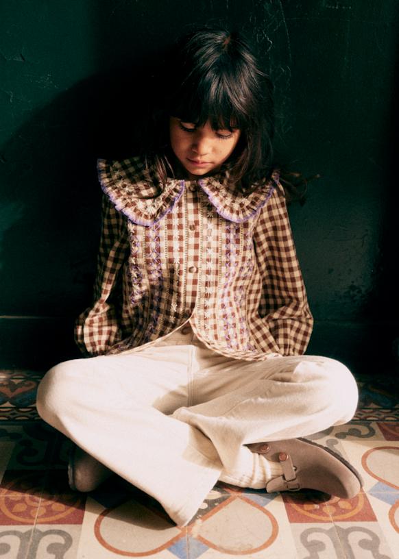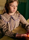 - Ruches aan de manchetten, samengetrokken door elastiek