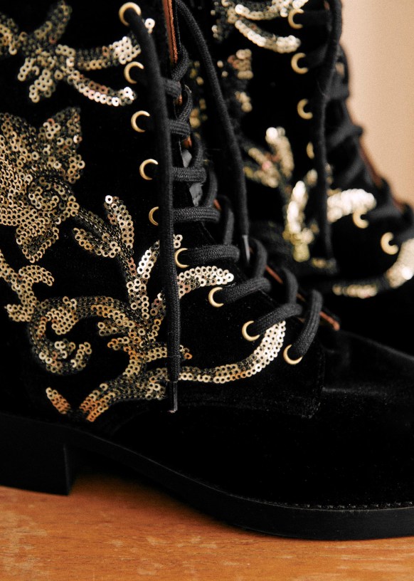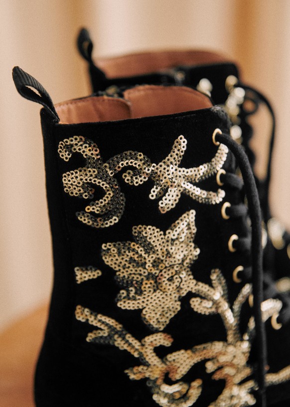 - Borduurwerk van goudkleurige metallic lovertjes