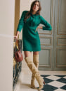 - Korte jurk van wol en kid mohair met lange mouwen