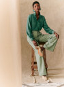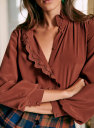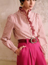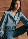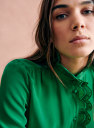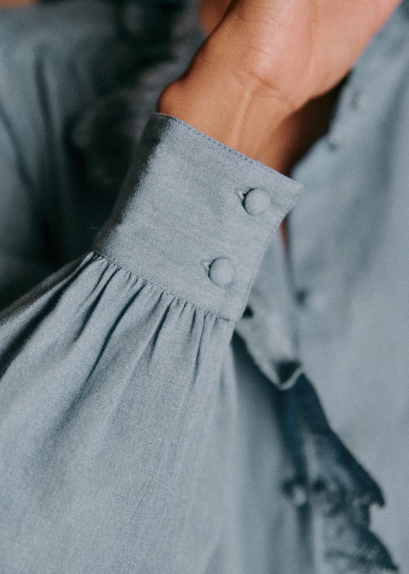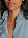 - Geschulpte volant rond kraag en sluiting