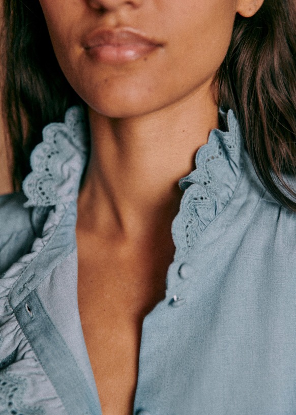 - Blouse van Engels borduurwerk met lange mouwen