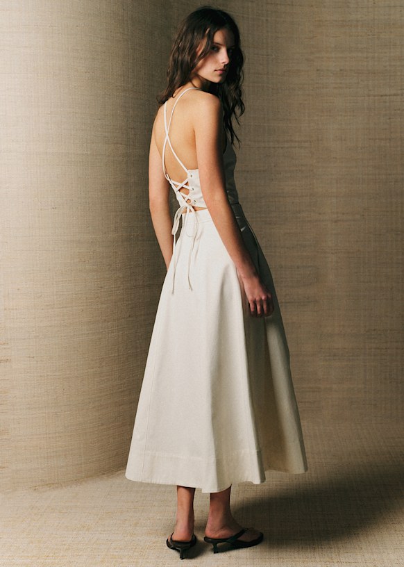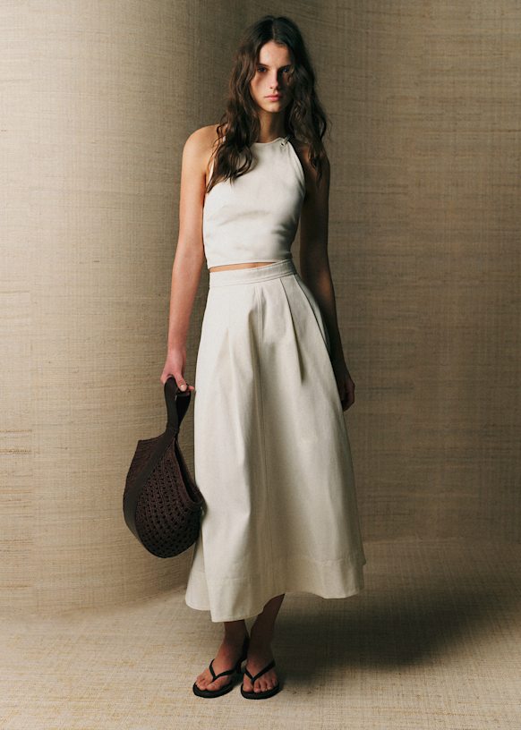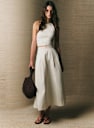 - Gemarkeerde plooien op de taille onder de ceintuur