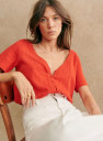 - Ingelegde guipure langs de halslijn en de knoopsluiting