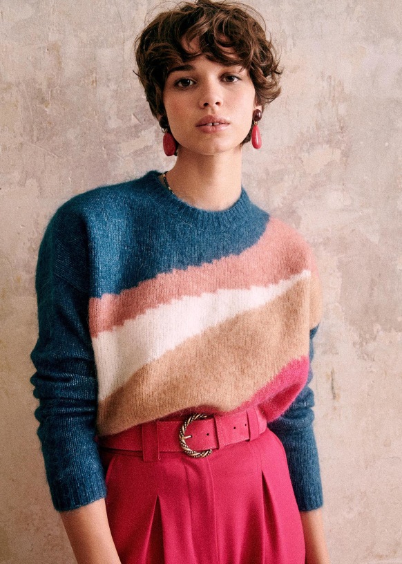 - Trui van wol en kid mohair met lange mouwen
