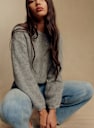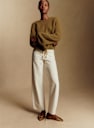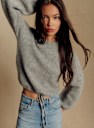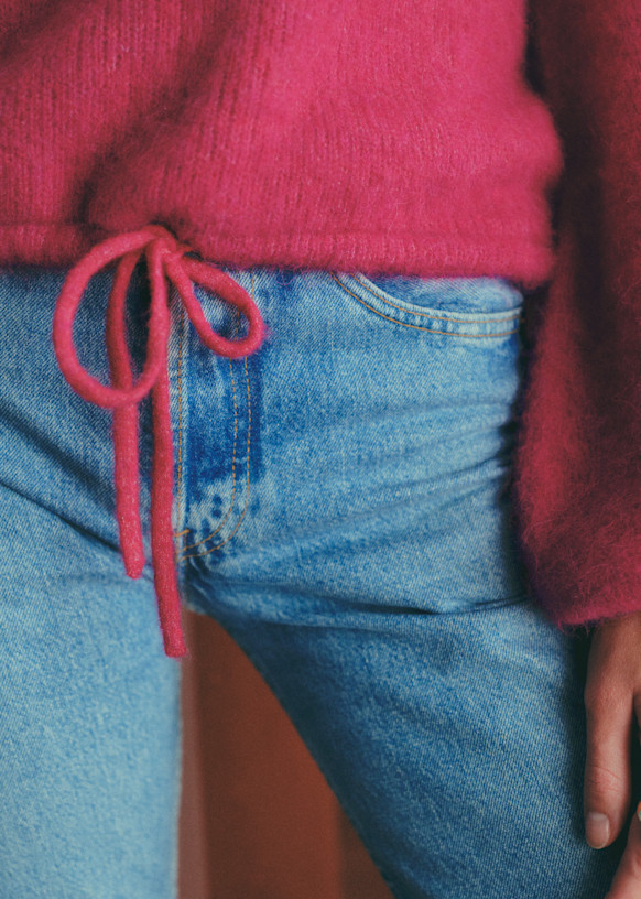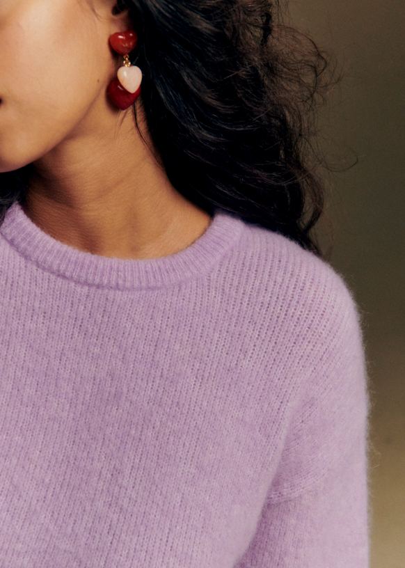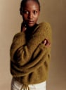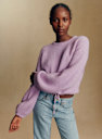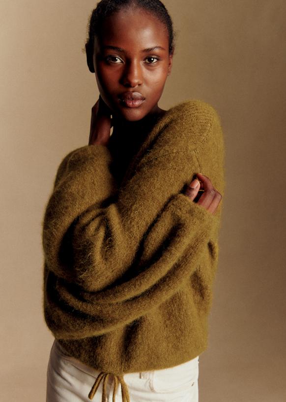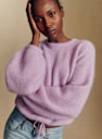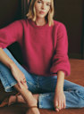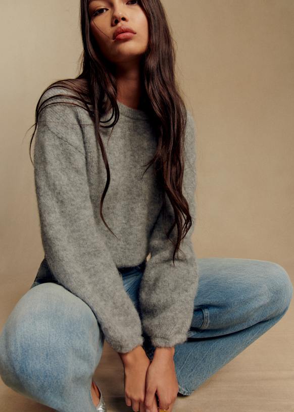 - Korte trui in baby alpaca met licht ballonvormige lange mouwen