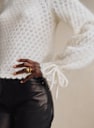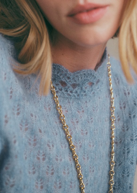 - Haakafwerking langs de halslijn en onderaan de mouwen