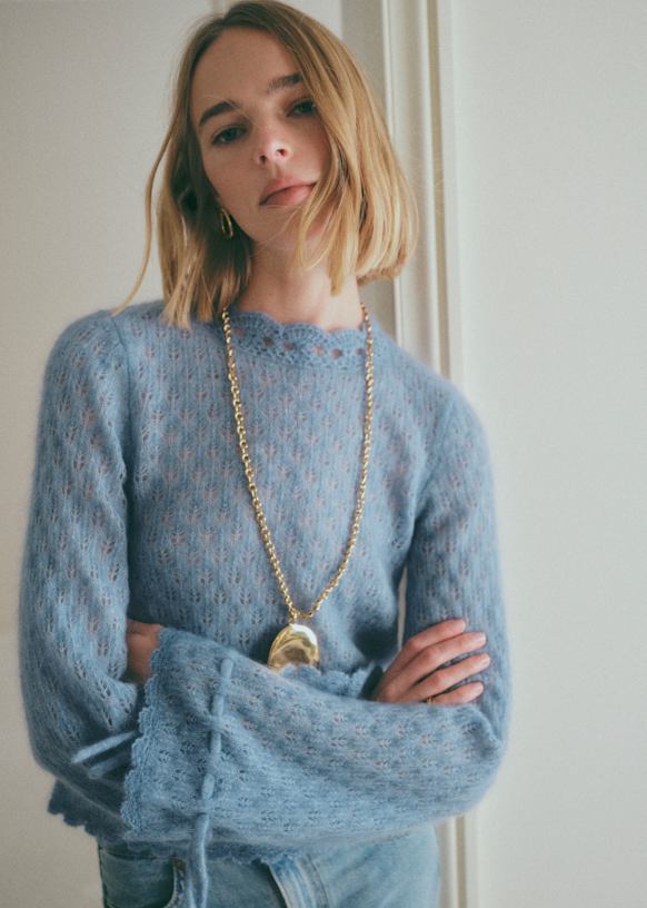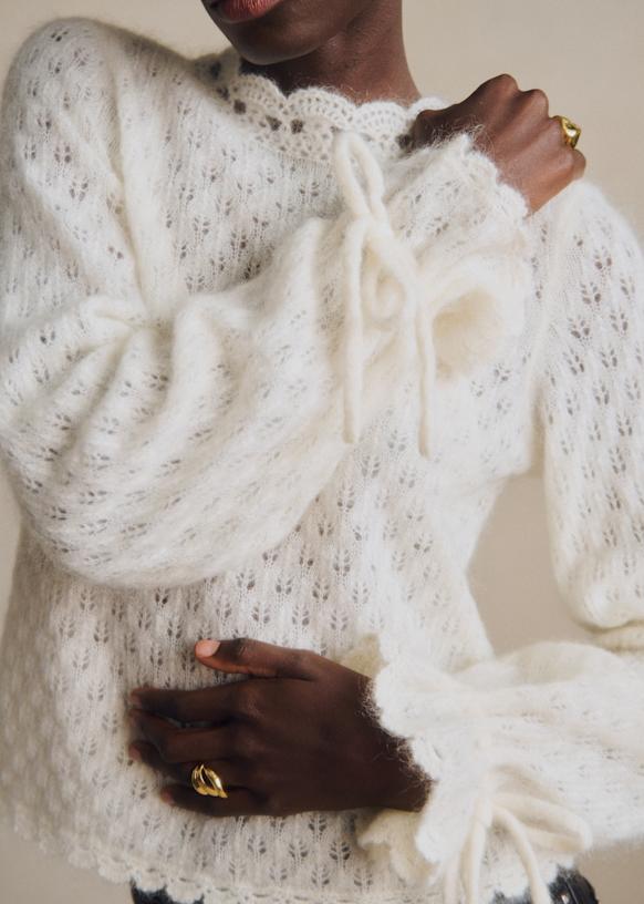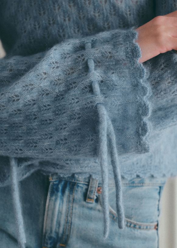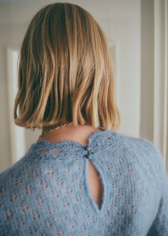 - Korte trui van merinowol en kidmohair met licht ballonvormige lange mouwen