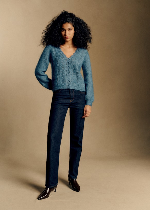 - Vest van kid mohair en merinowol met lange mouwen met licht balloneffect