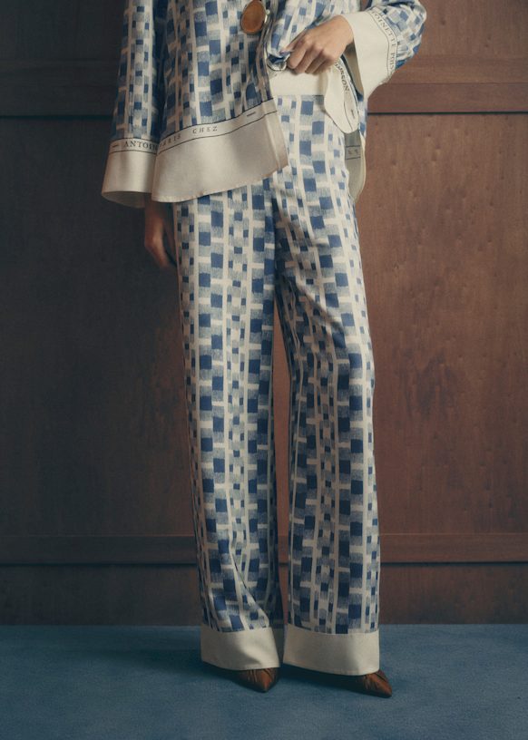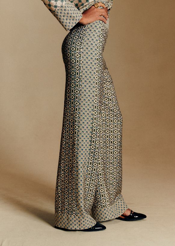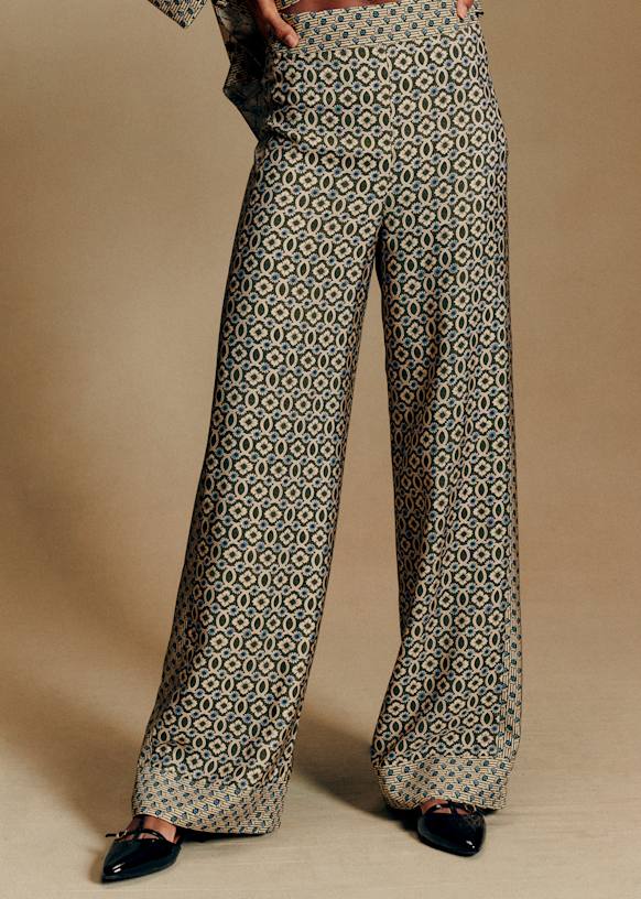 - Calças estampadas de viscose seda com cintura subida