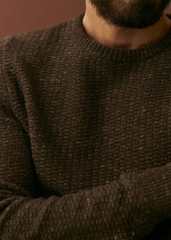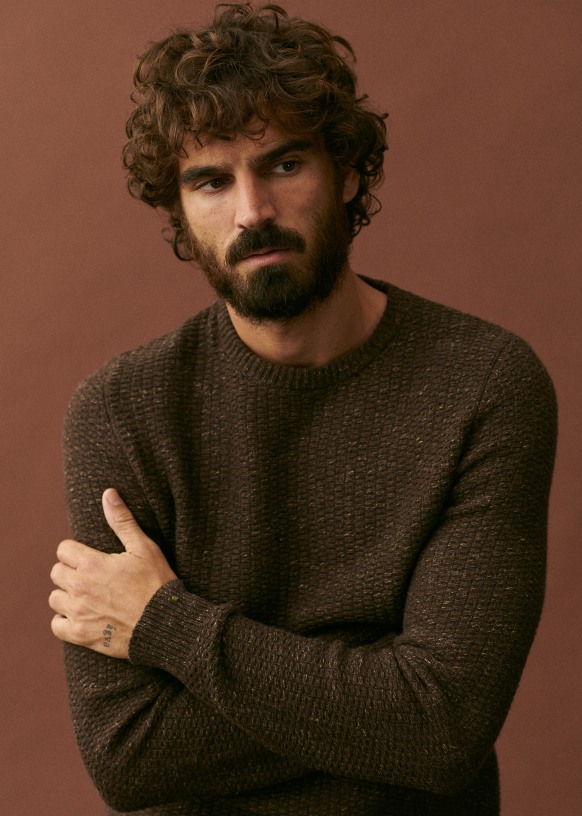 - 38% lã, 28% lã reciclada, 16% poliamida reciclada, 13% algodão, 5% linho
