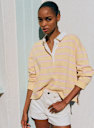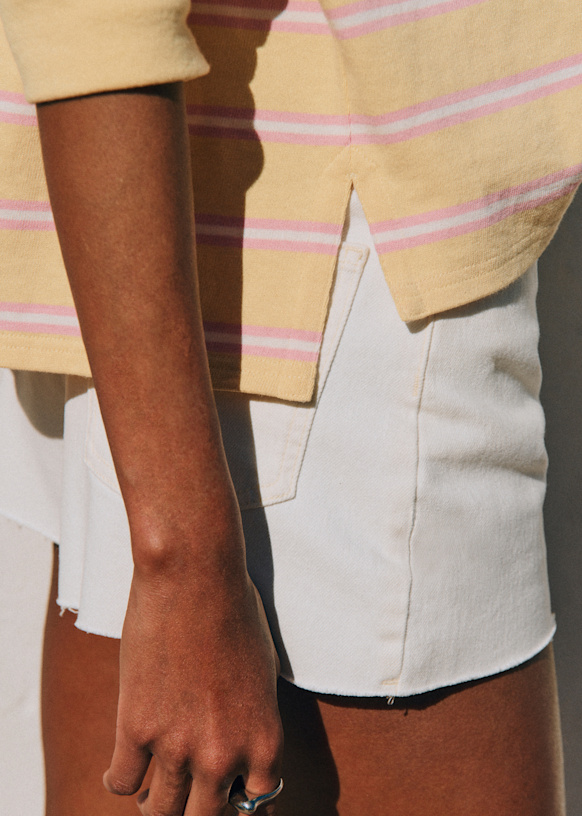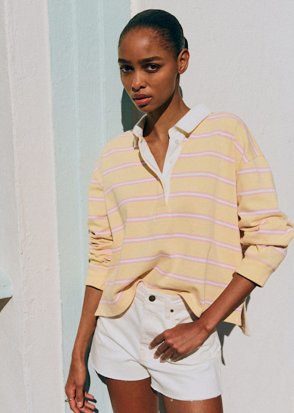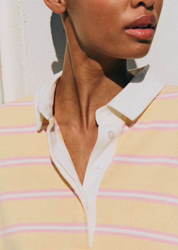- Polo listrado em algodão orgânico com mangas longas
