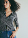 - Decote redondo fechado com uma aba de botões na frente