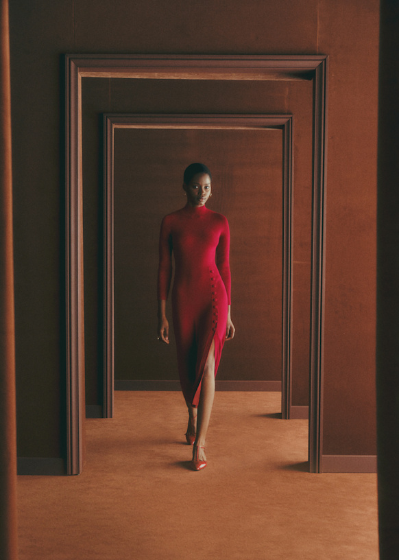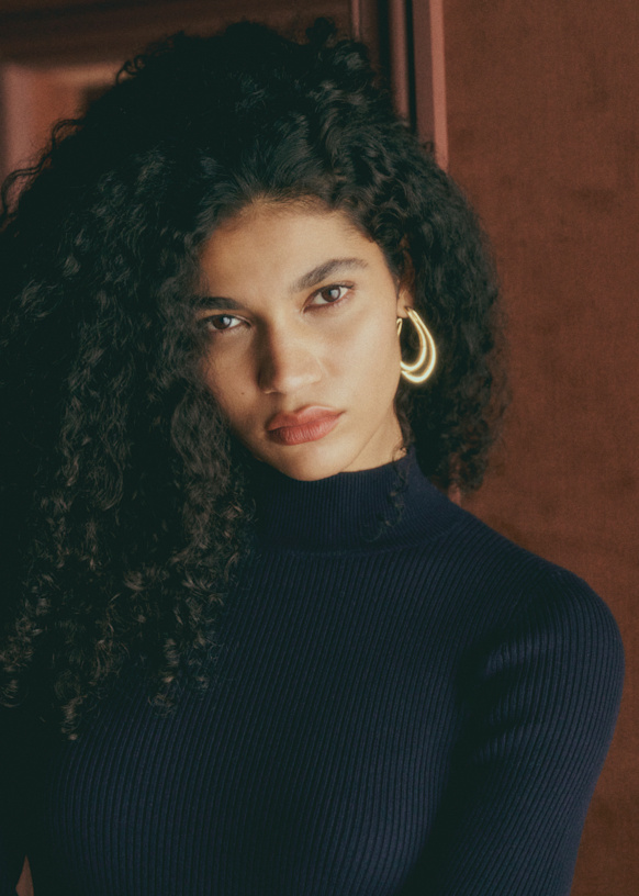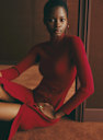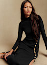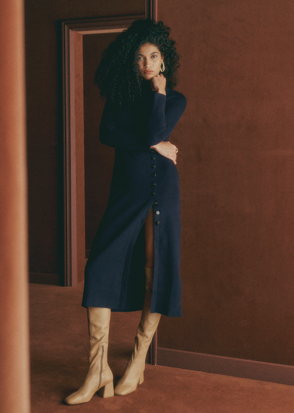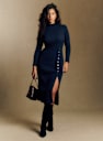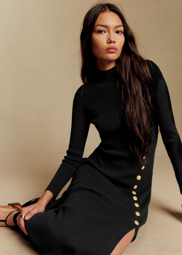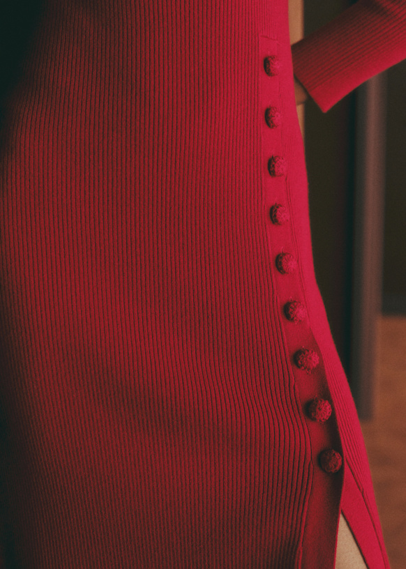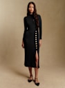 - Vestido midi ajustado em lã merino e algodão orgânico com mangas longas