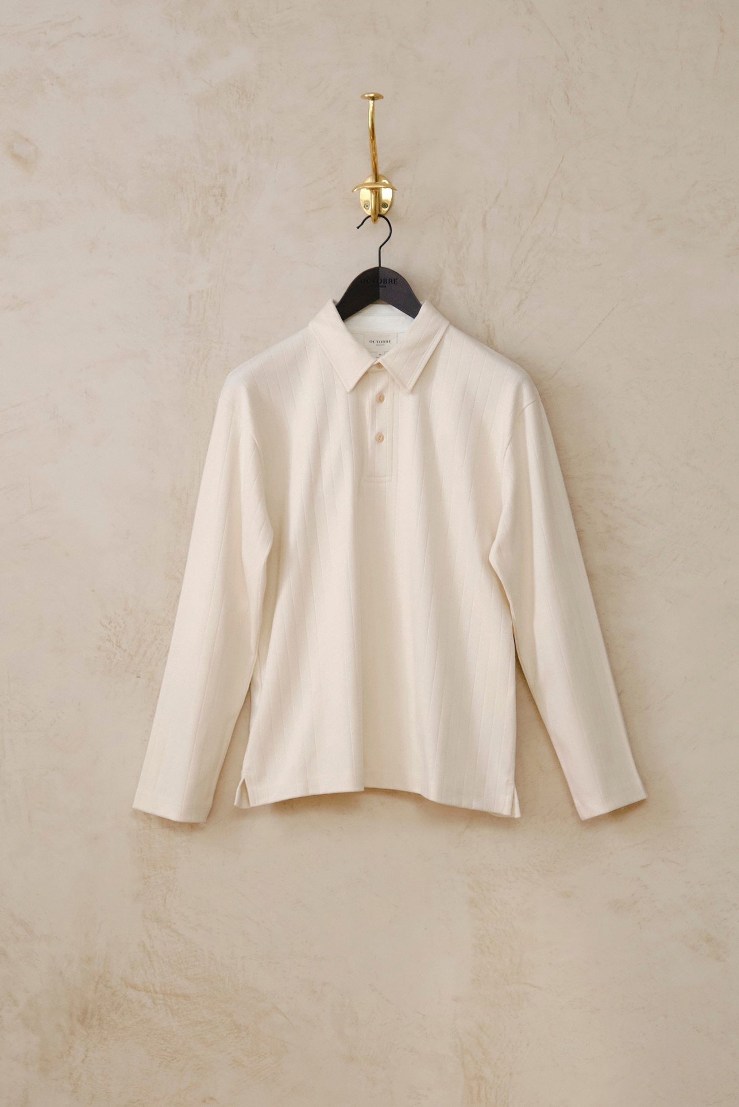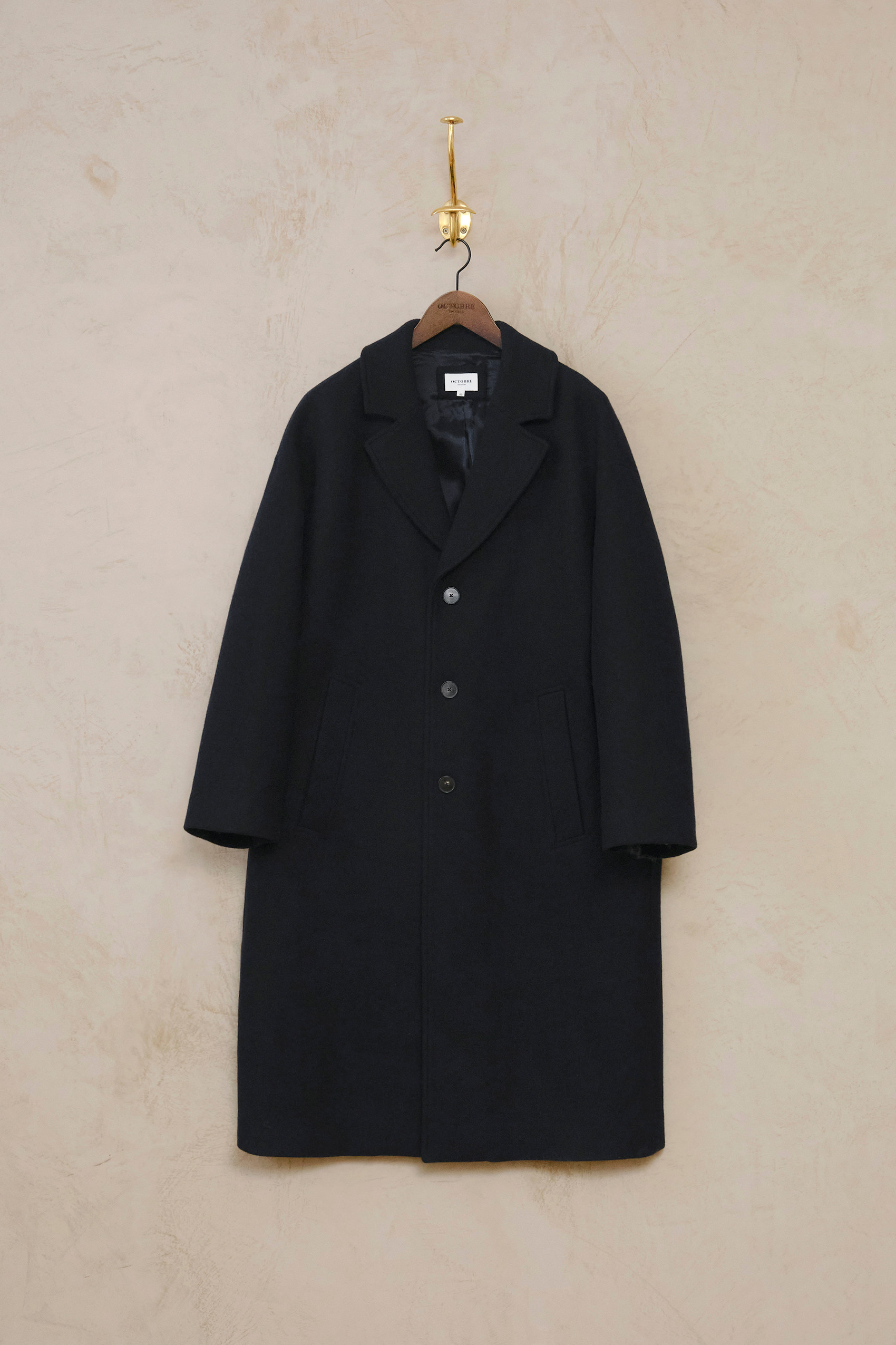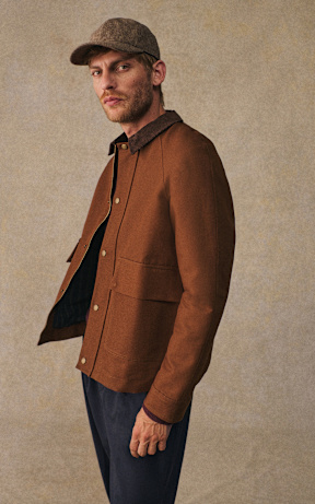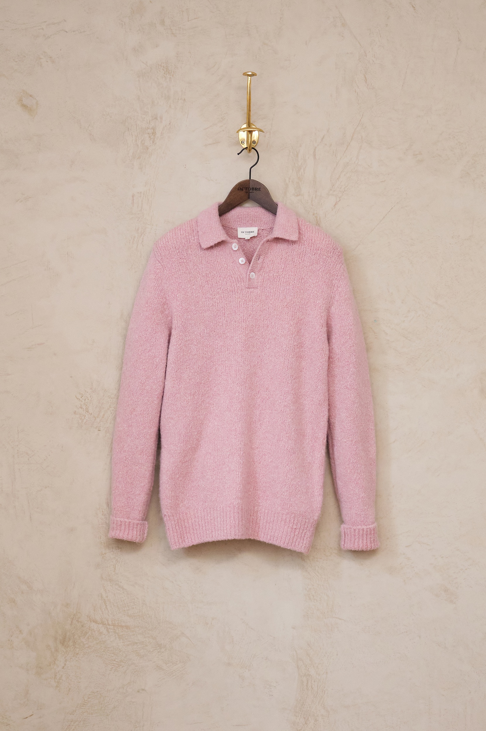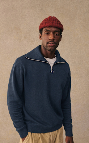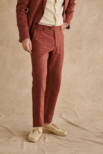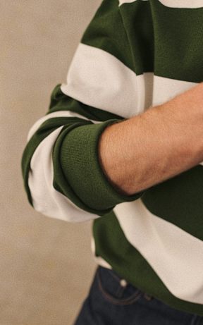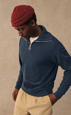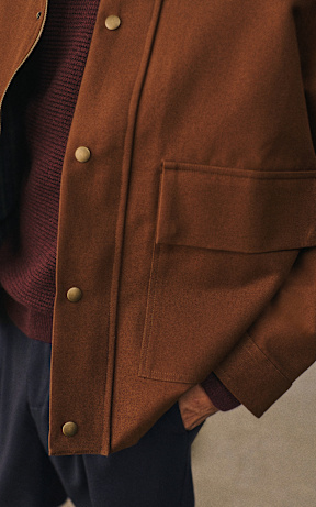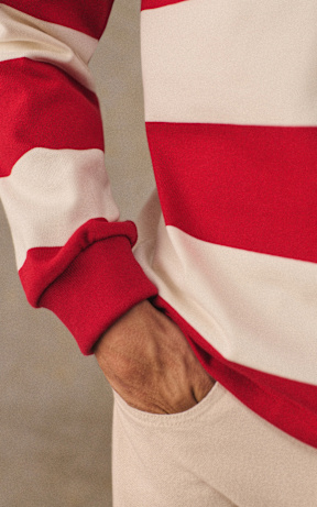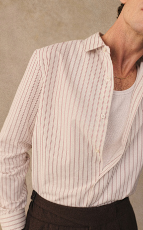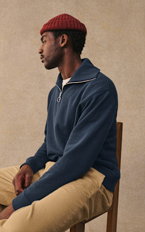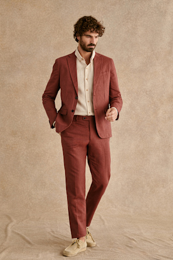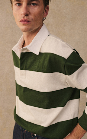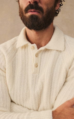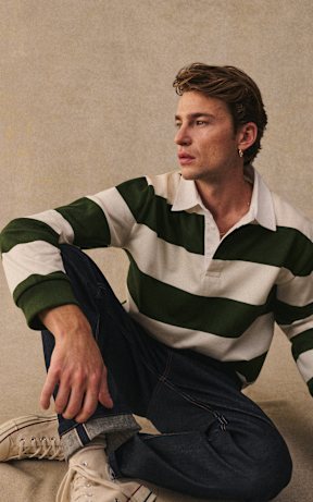 A polo, a blazer, and a touch of red energize the look, balanced by long coats and fluid volumes for a modern, elegant, and comfortable style.