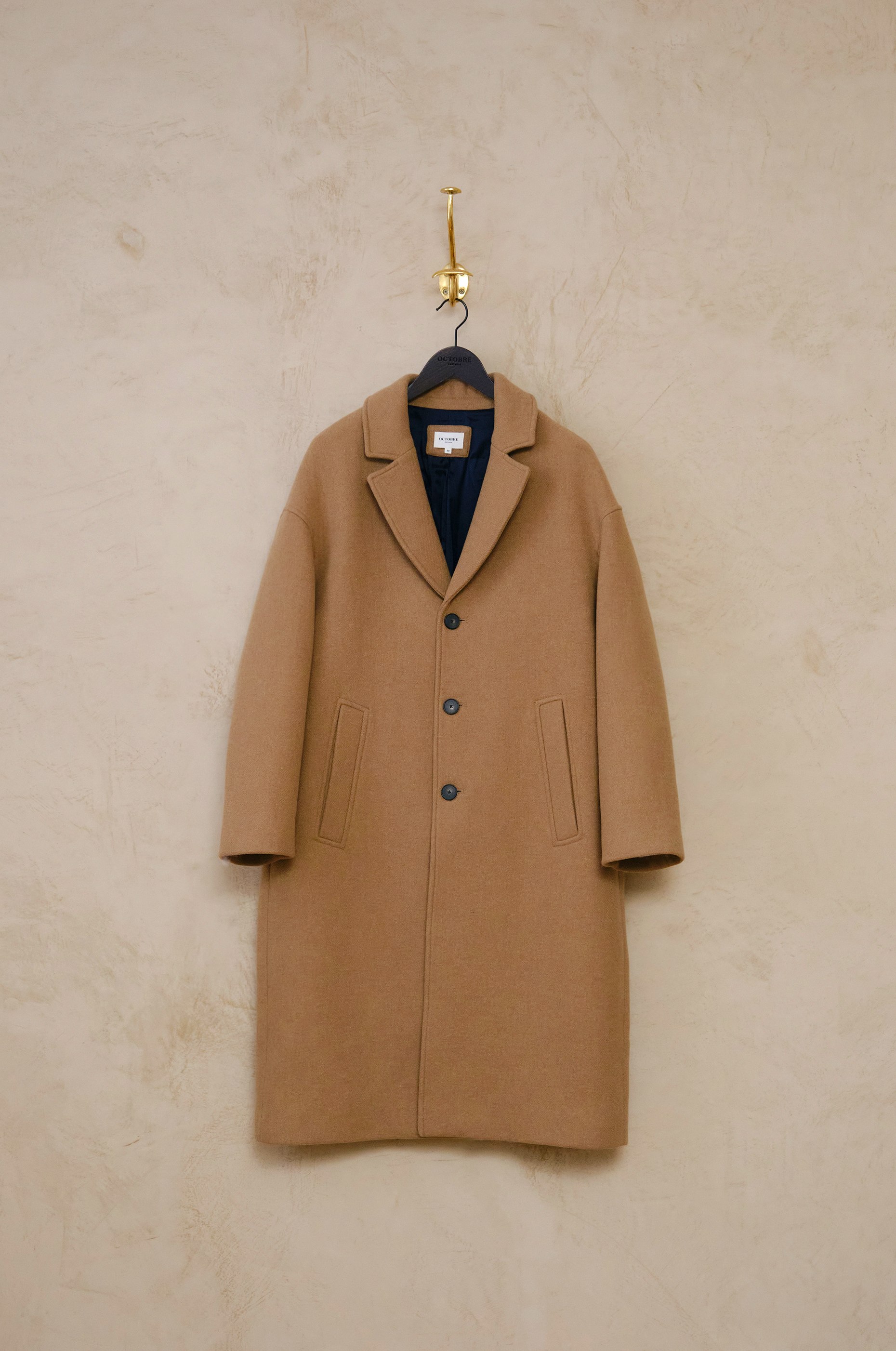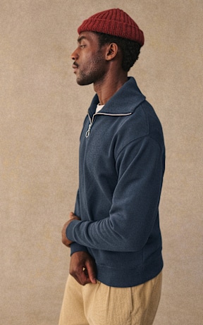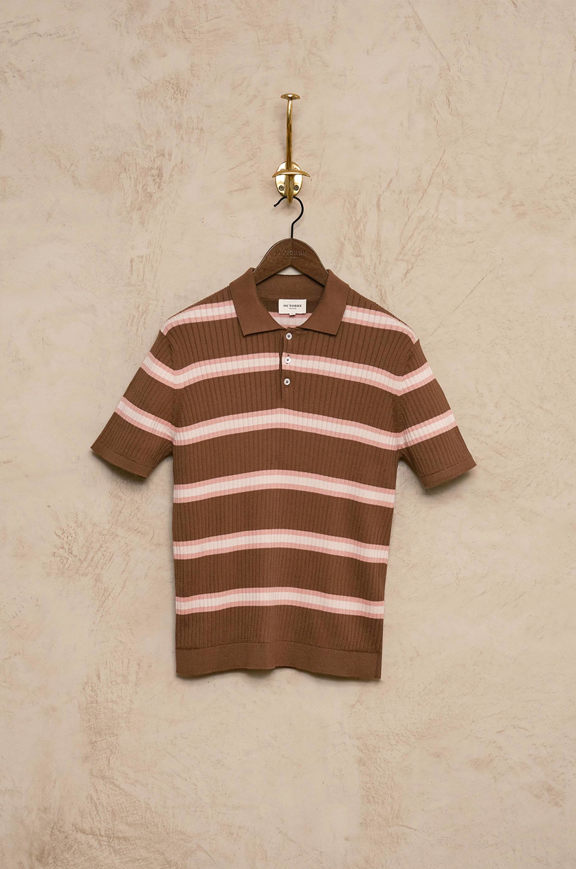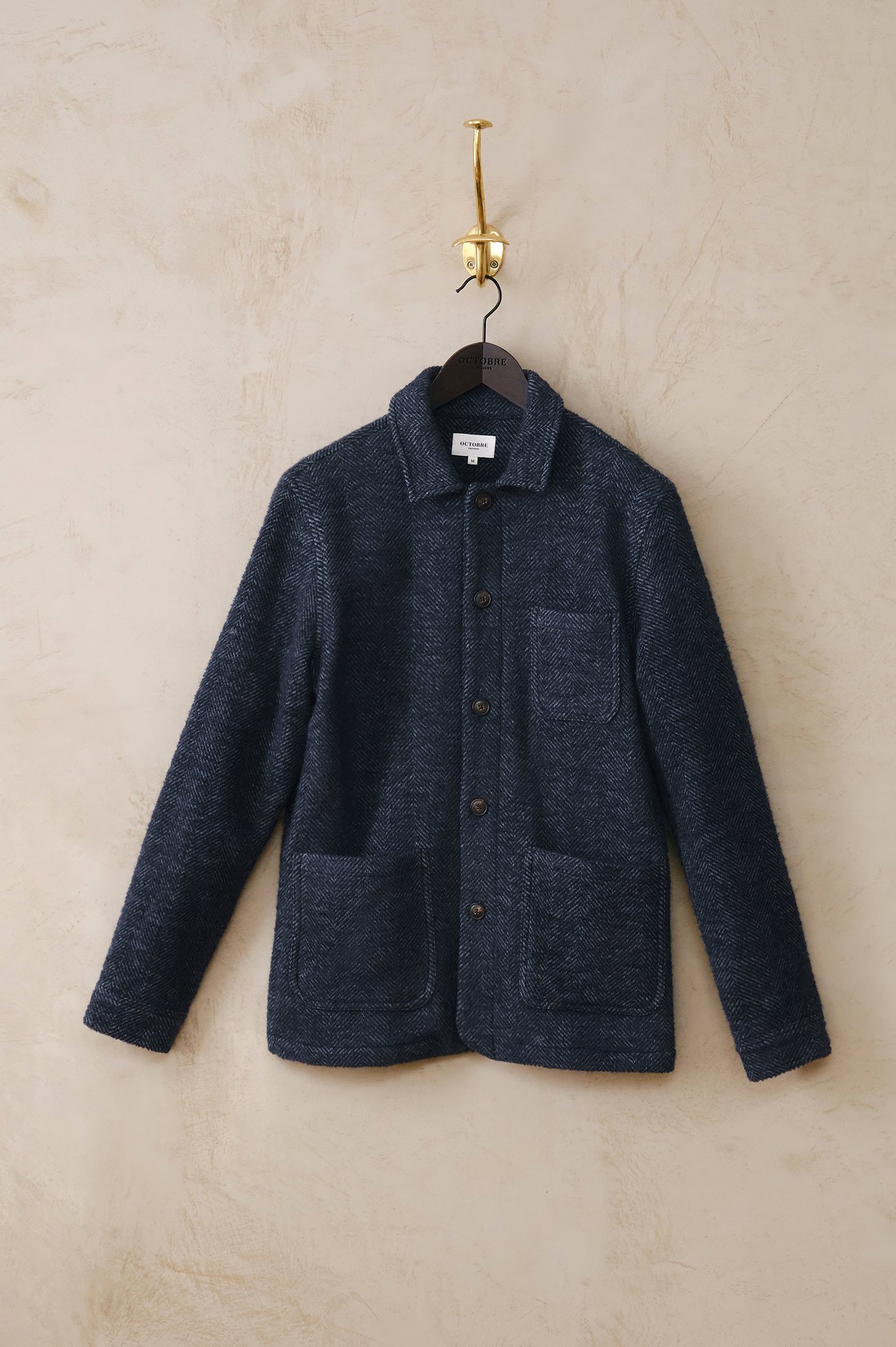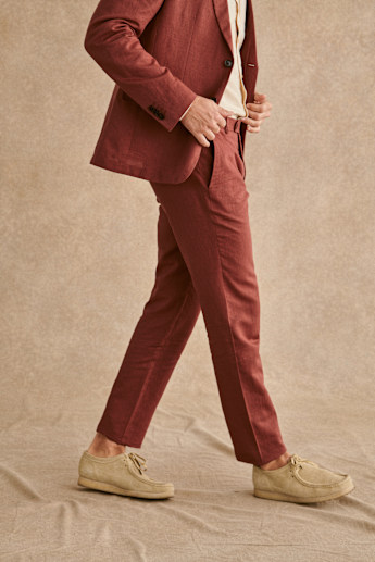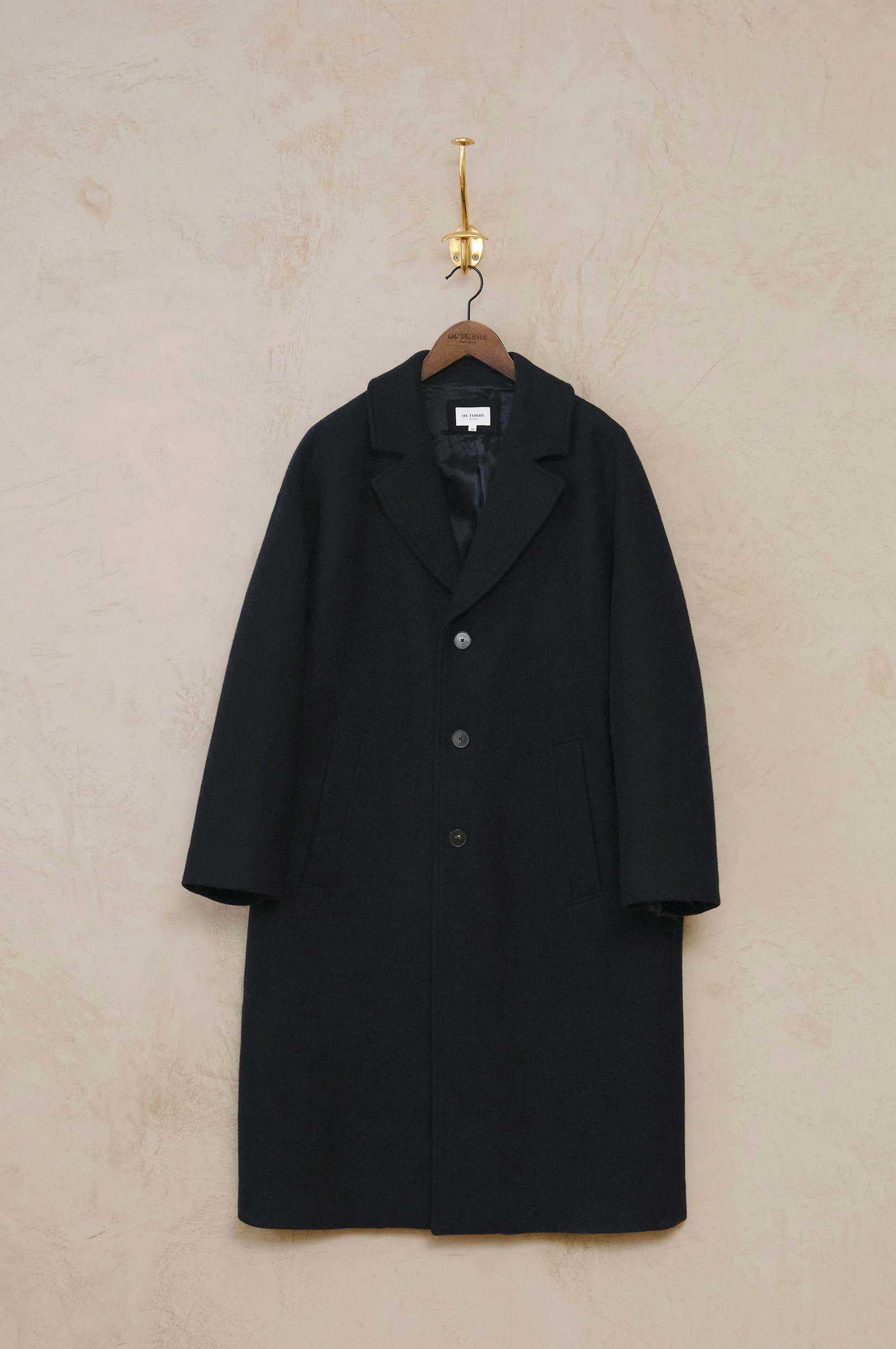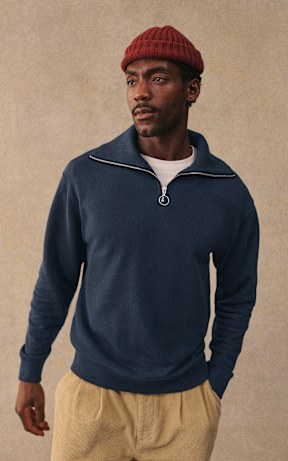 A polo, a blazer, and a touch of red energize the look, balanced by long coats and fluid volumes for a modern, elegant, and comfortable style.