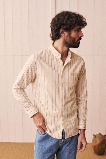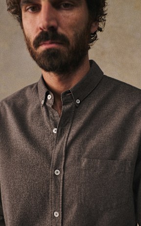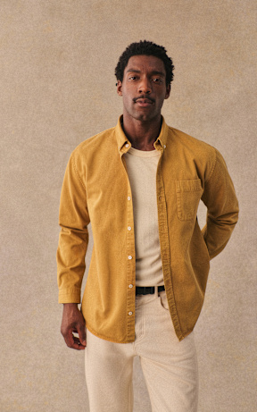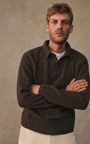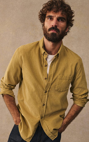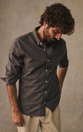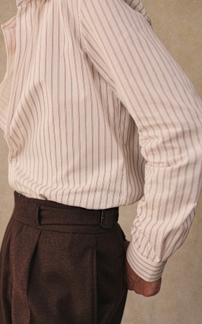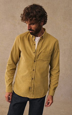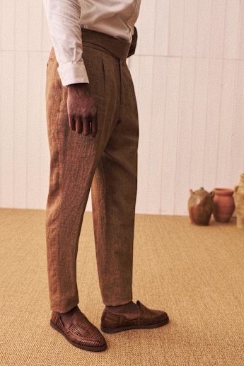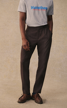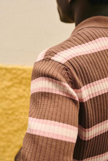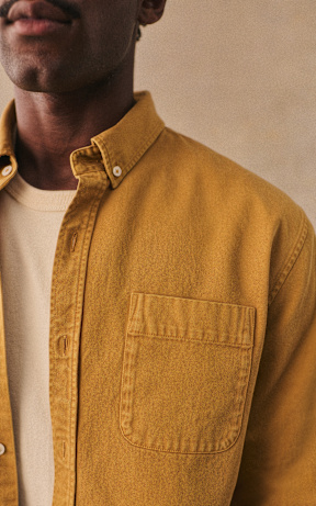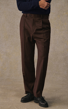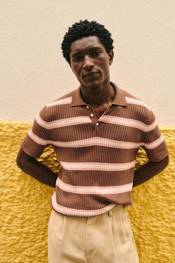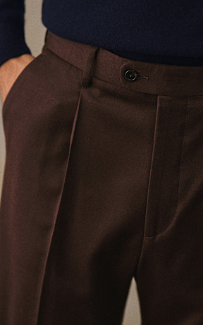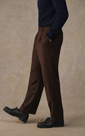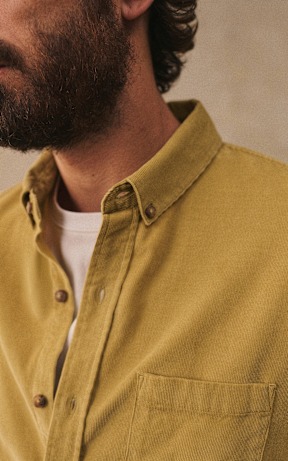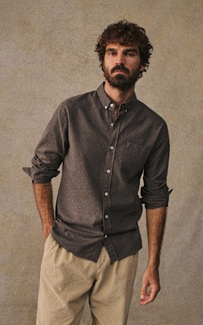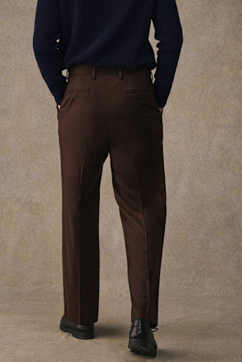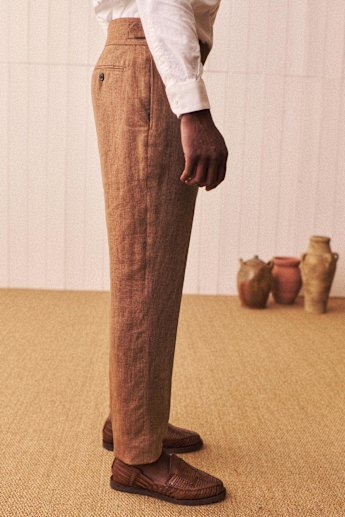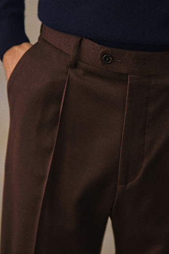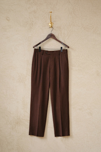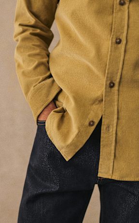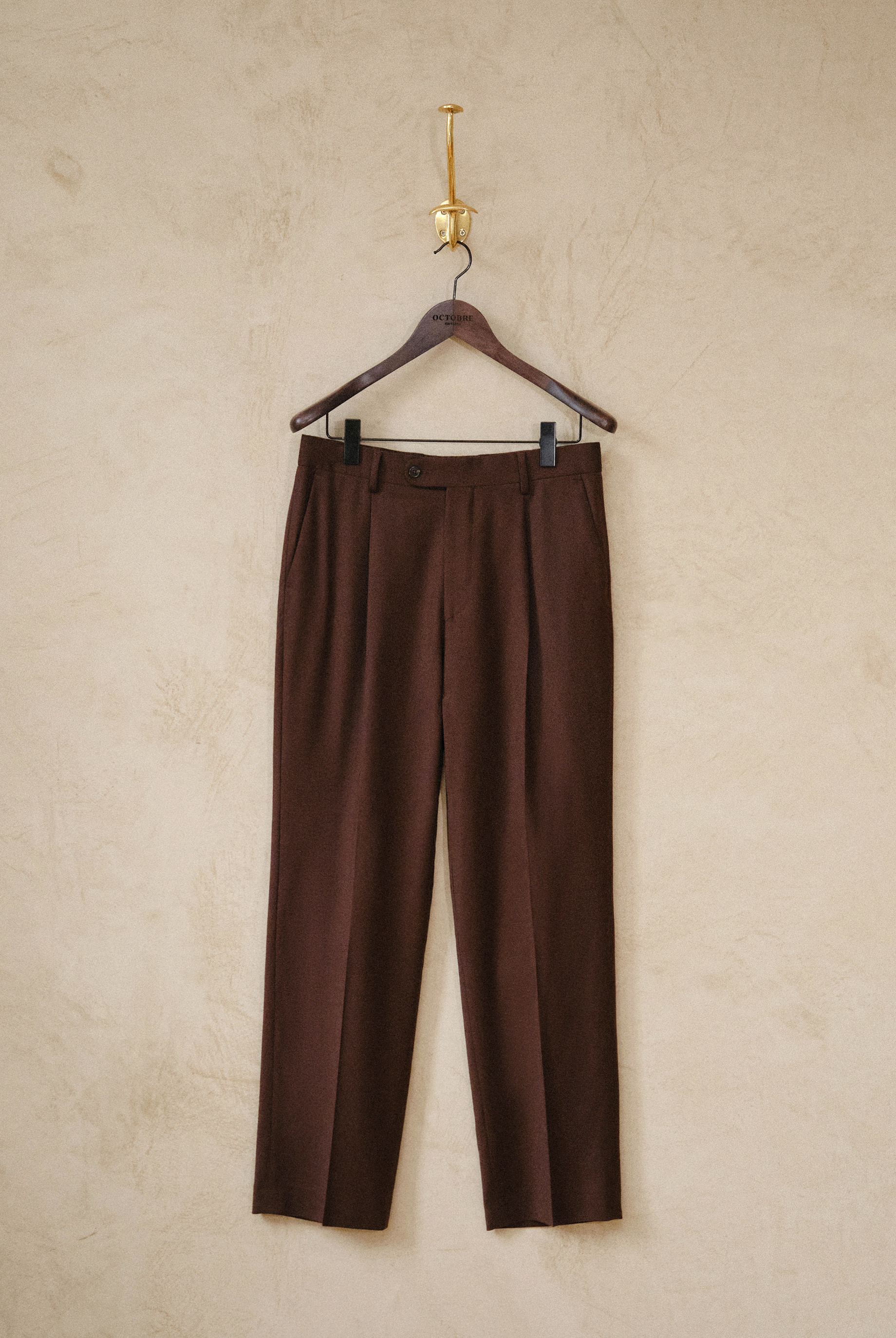 A yellow shirt and oversized brown trousers: a duo that plays with contrasts and volumes. Bold effortlessly, modern and comfortable—a look that expresses personality with style.