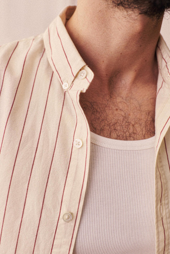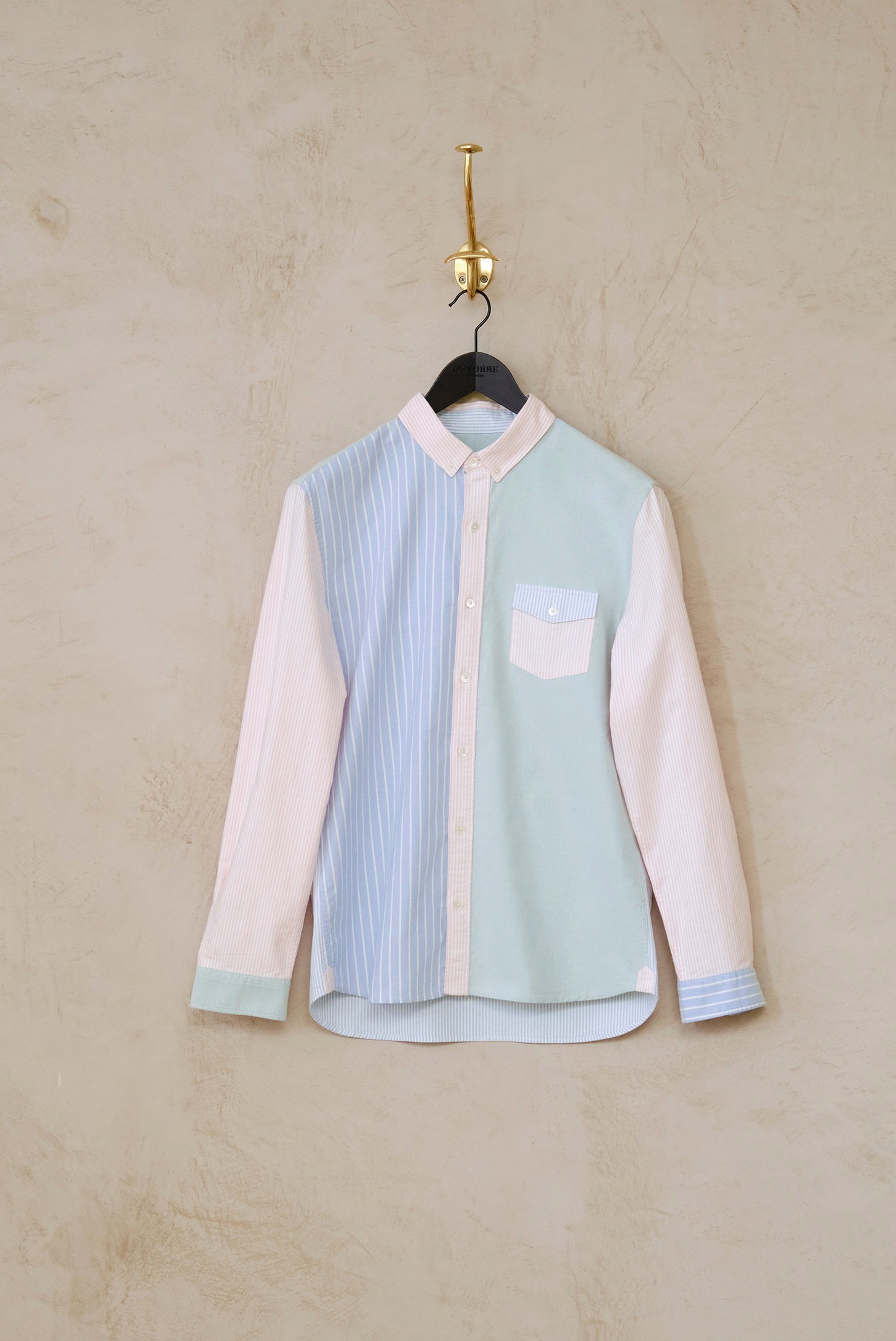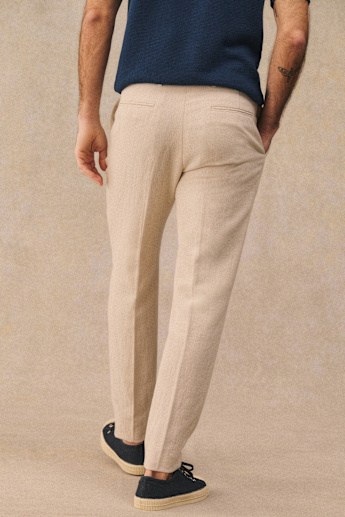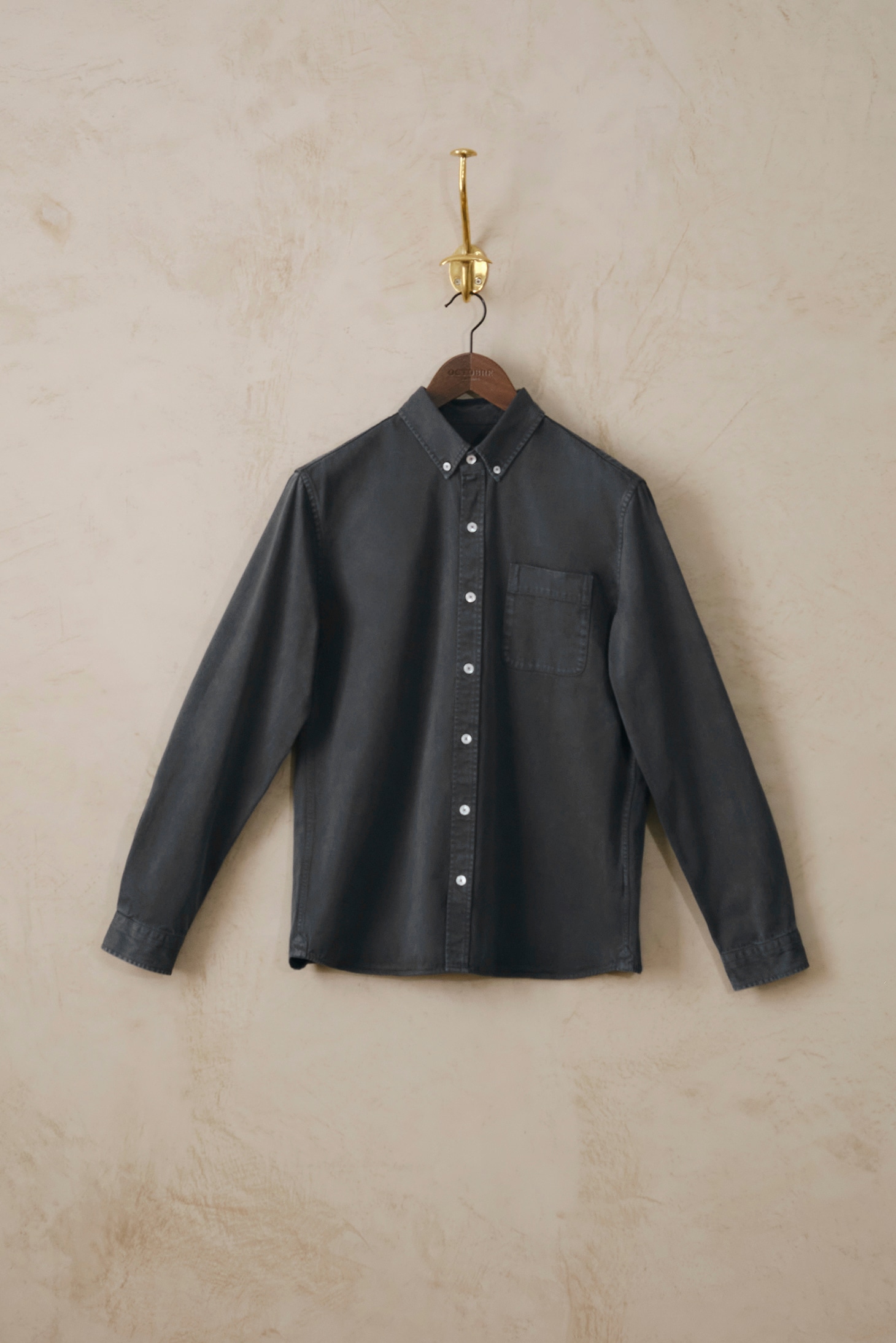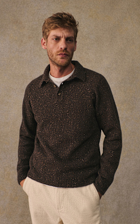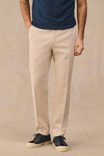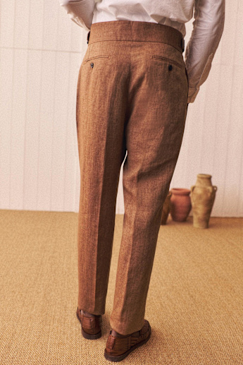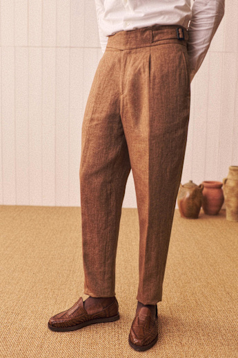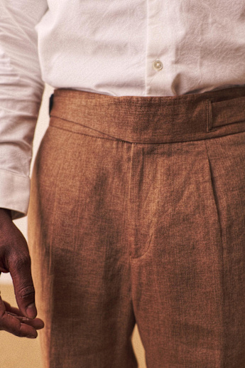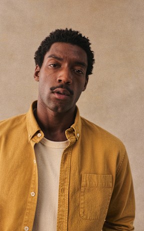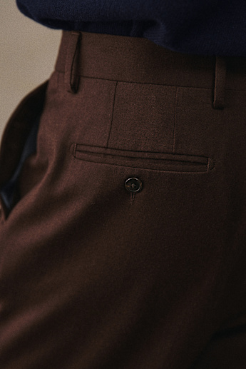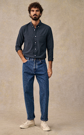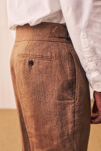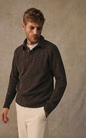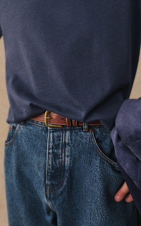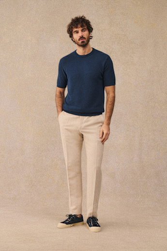 A yellow shirt and oversized brown trousers: a duo that plays with contrasts and volumes. Bold effortlessly, modern and comfortable—a look that expresses personality with style.