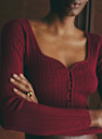 - Square neckline with button placket closure at the front