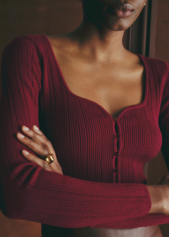 - Long-sleeved knit cardigan
