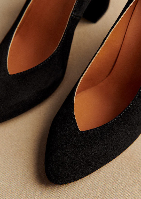 - Suede leather covered heel