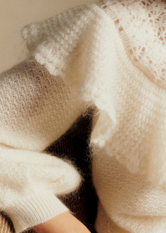 - Long-sleeved sweater in kid mohair and merino wool with slightly balloon sleeves