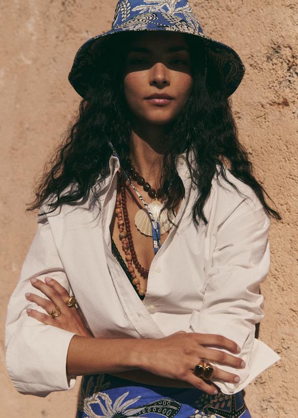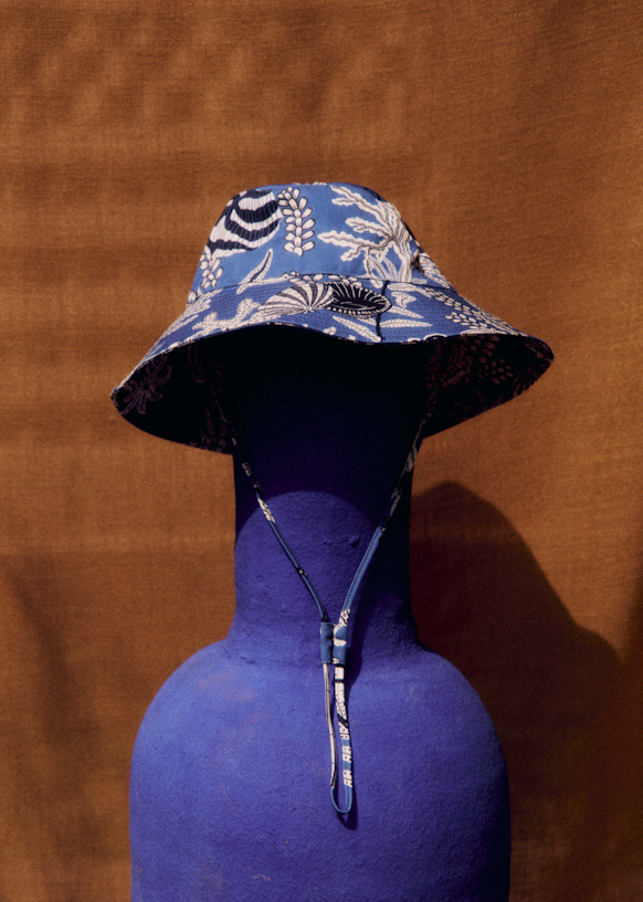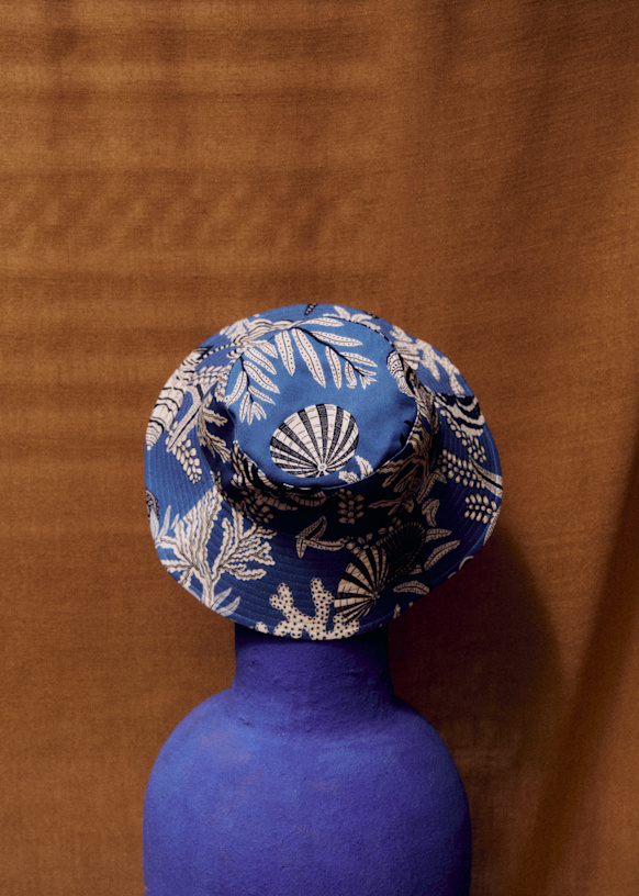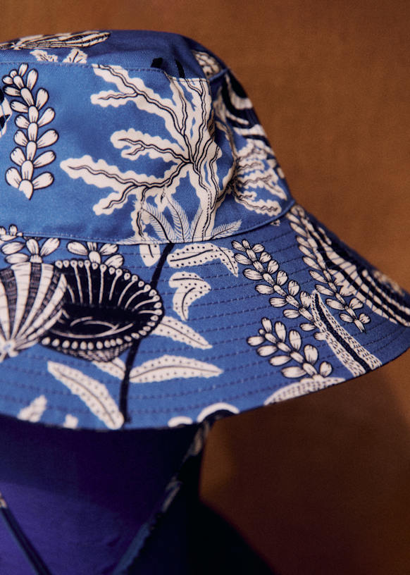 - Cotton bucket hat in our blue shell print