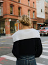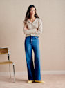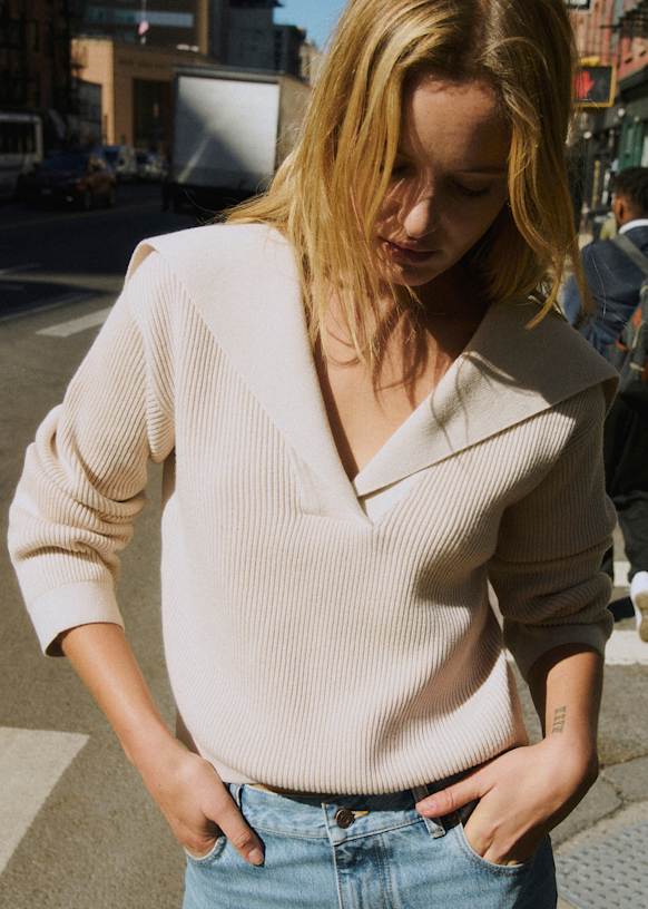 - Short sweater in merino wool and organic cotton with long sleeves