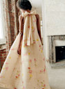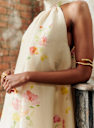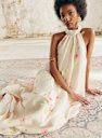 - Long printed sleeveless dress in linen and silk