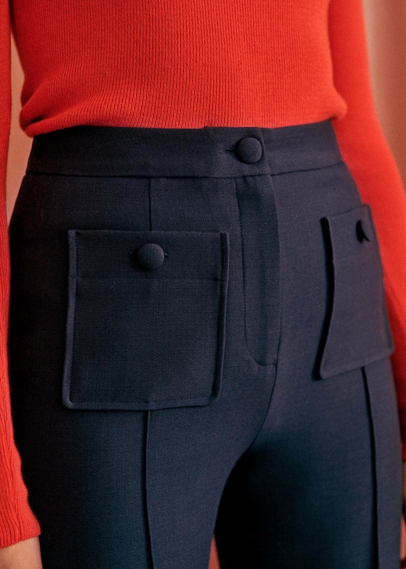 - Patch pockets on front, piping on back