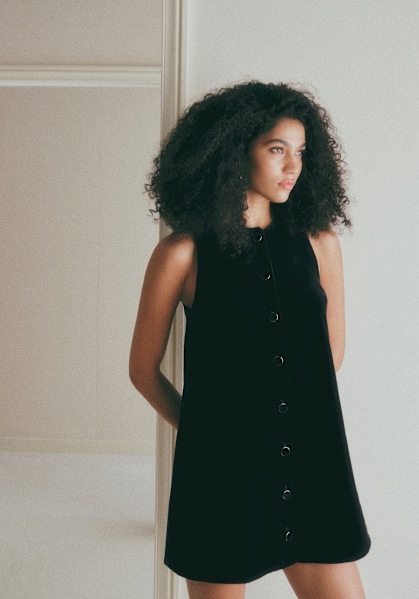 - Invisible zip and hook closure at the back