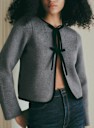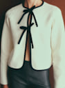 - Round neckline closed with two ties
