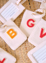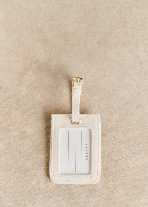 - Suitcase tag with cardboard box