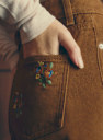 - Zip fly with button at waistband
