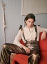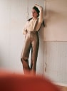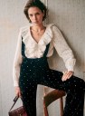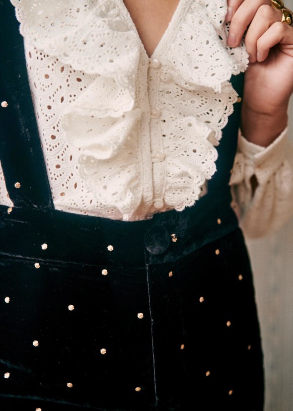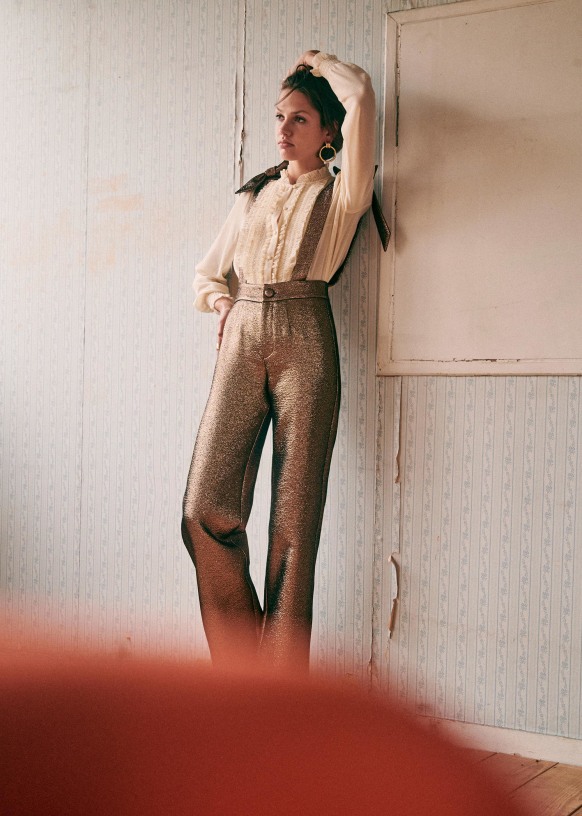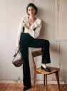 - Pantalón de tiro alto de terciopelo bordado