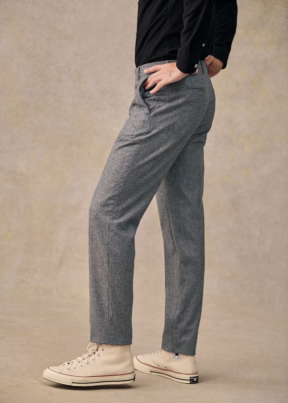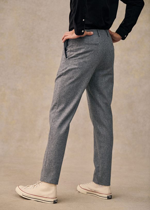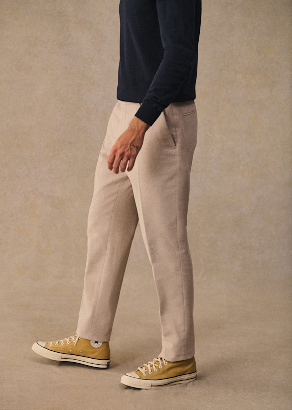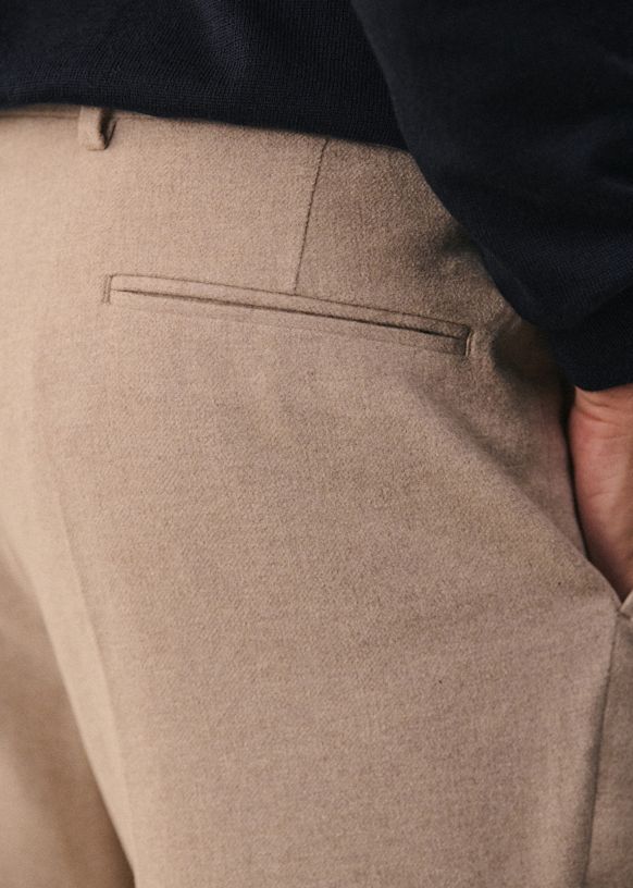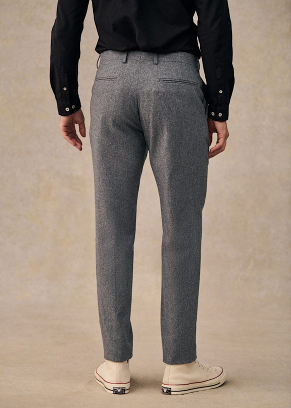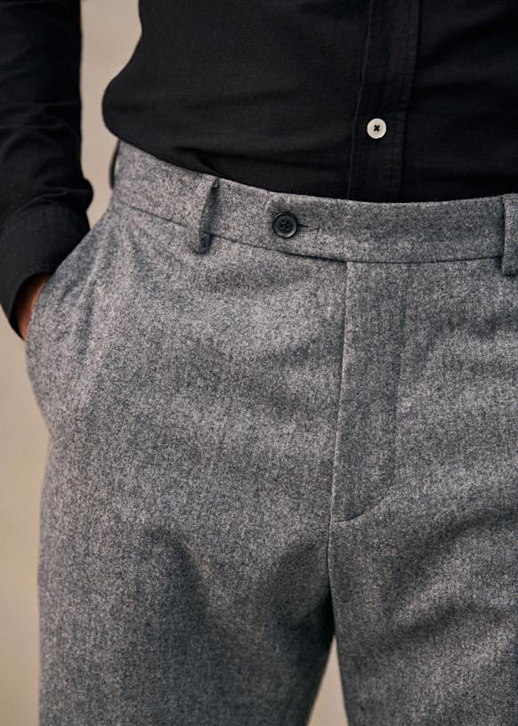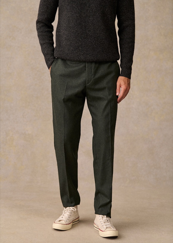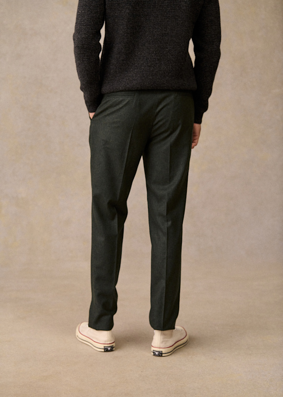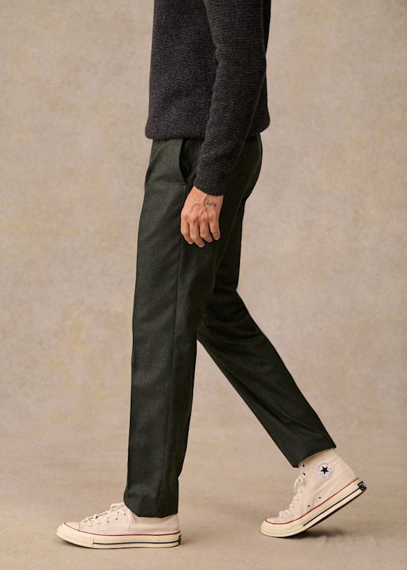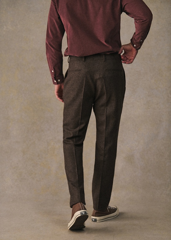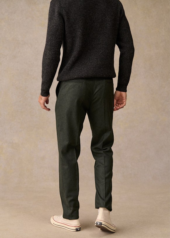 El diseño de este pantalón permite utilizarlo con sneakers para un estilo desenfadado o con zapatos para un look más vestido. La franela de lana italiana te ofrecerá una comodidad a toda prueba y una caída impecable.