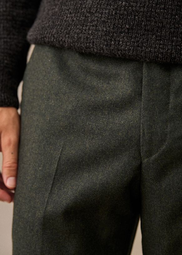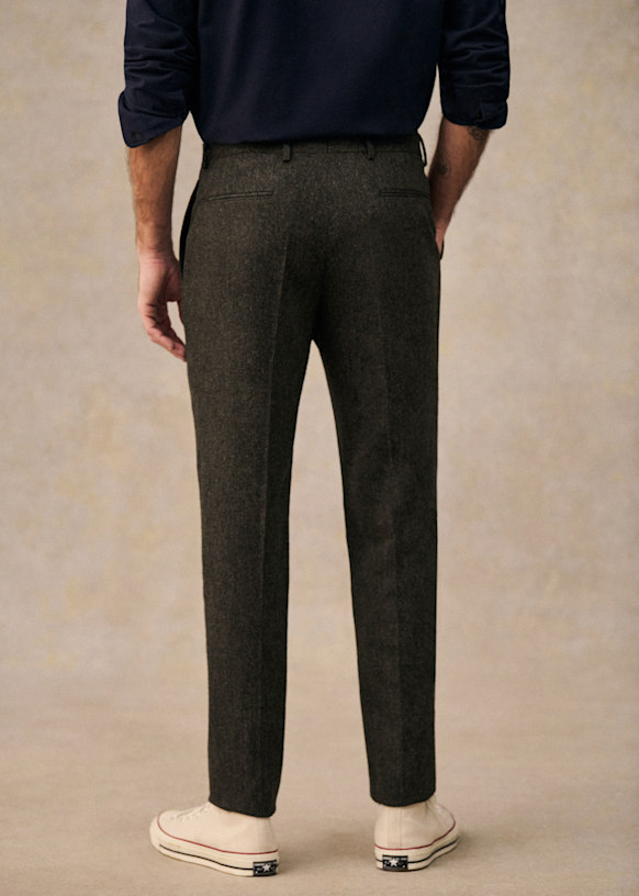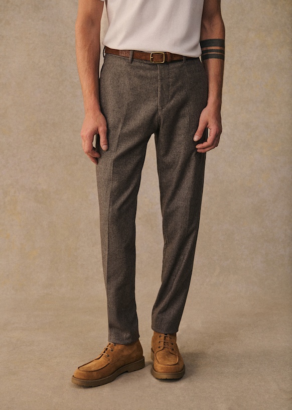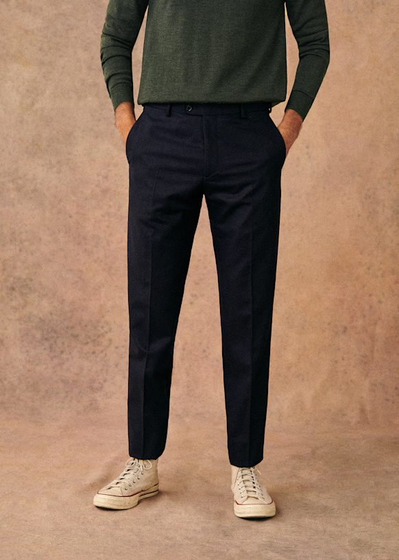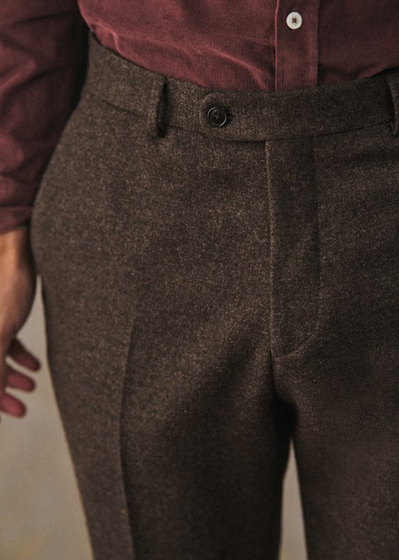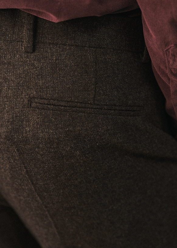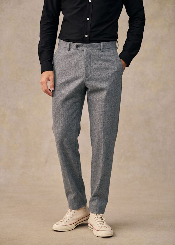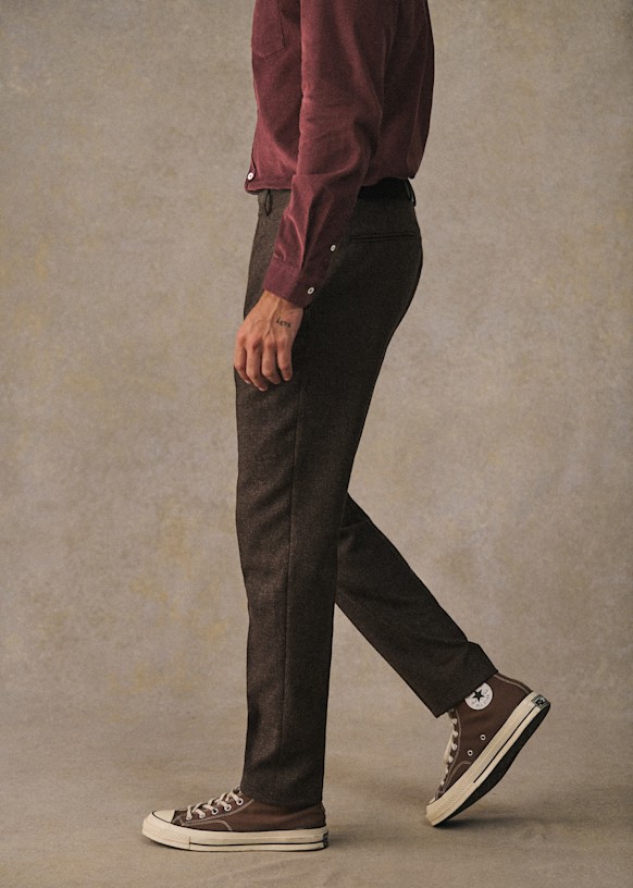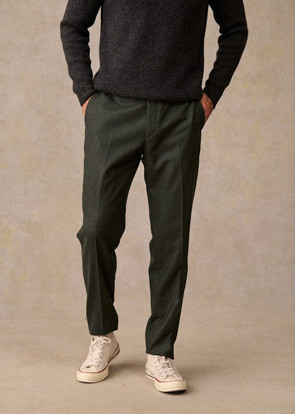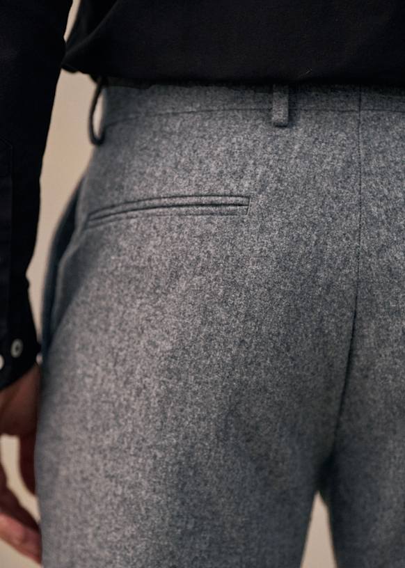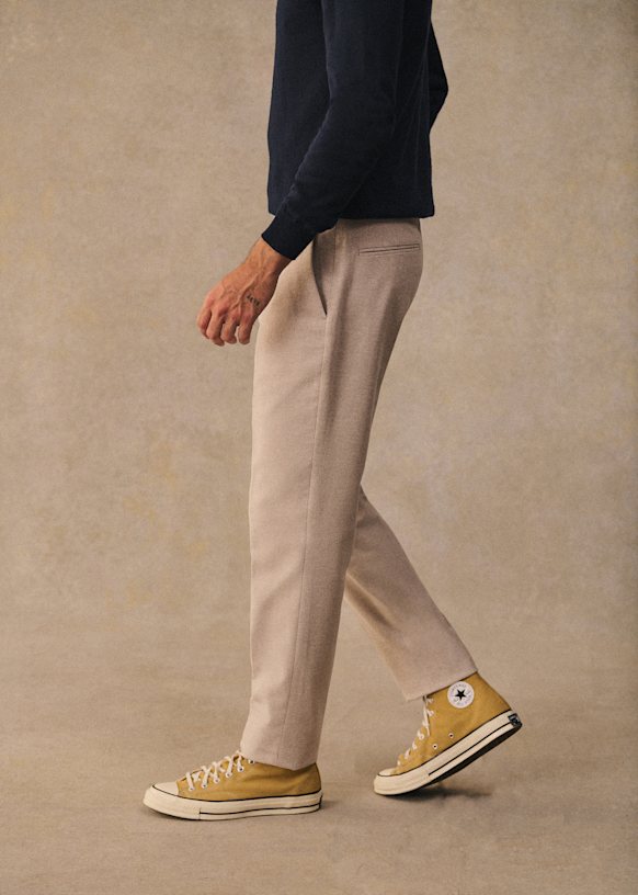 El diseño de este pantalón permite utilizarlo con sneakers para un estilo desenfadado o con zapatos para un look más vestido. La franela de lana italiana te ofrecerá una comodidad a toda prueba y una caída impecable.