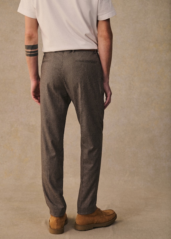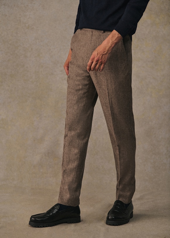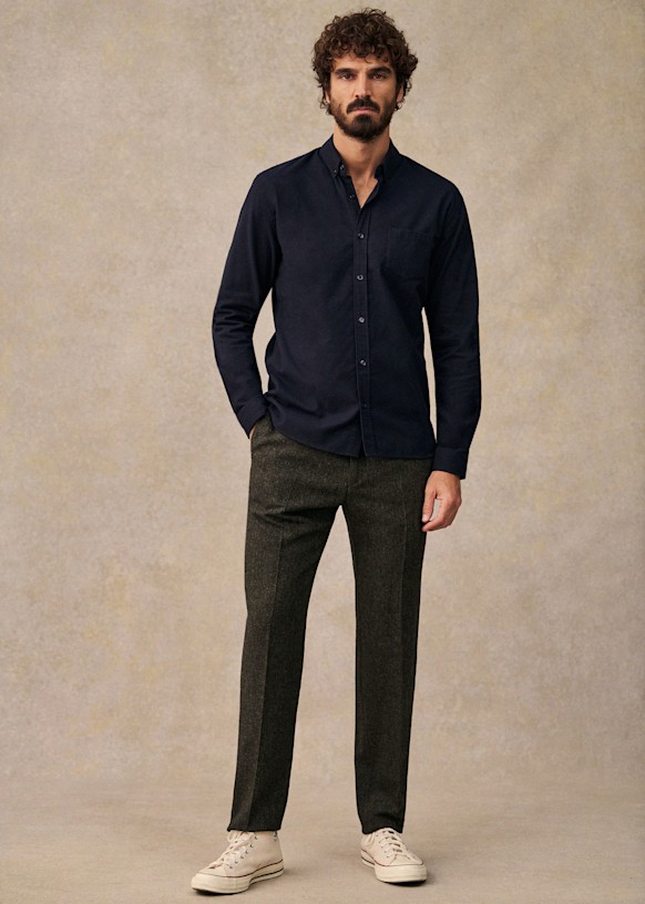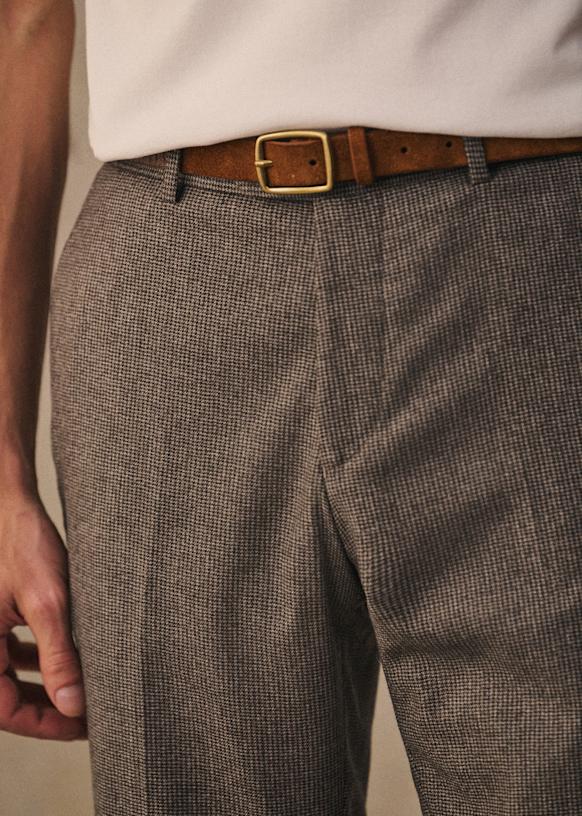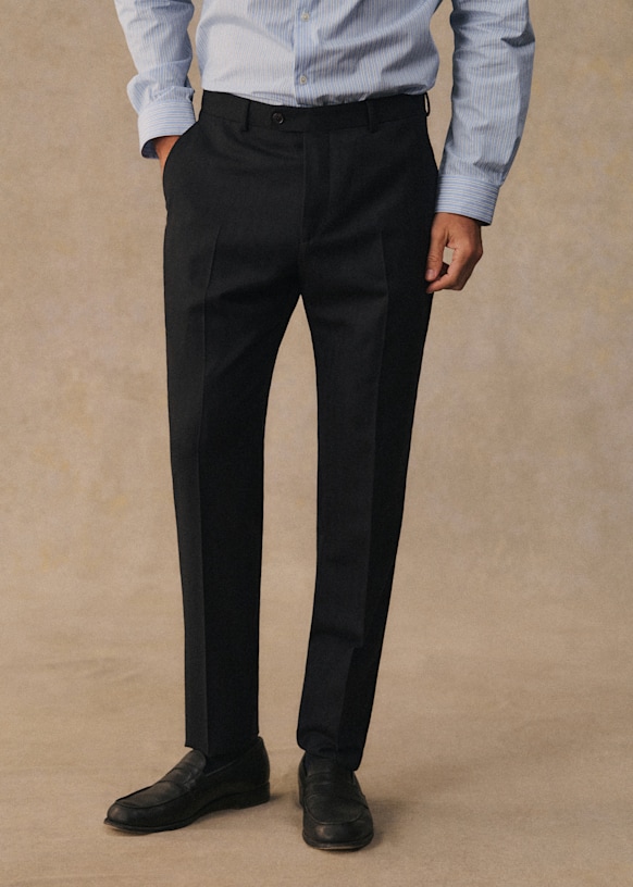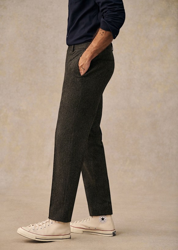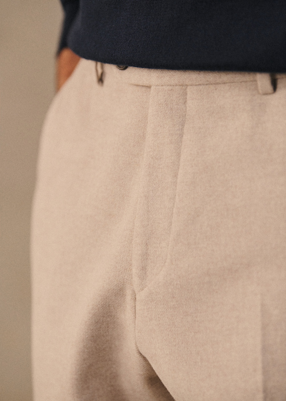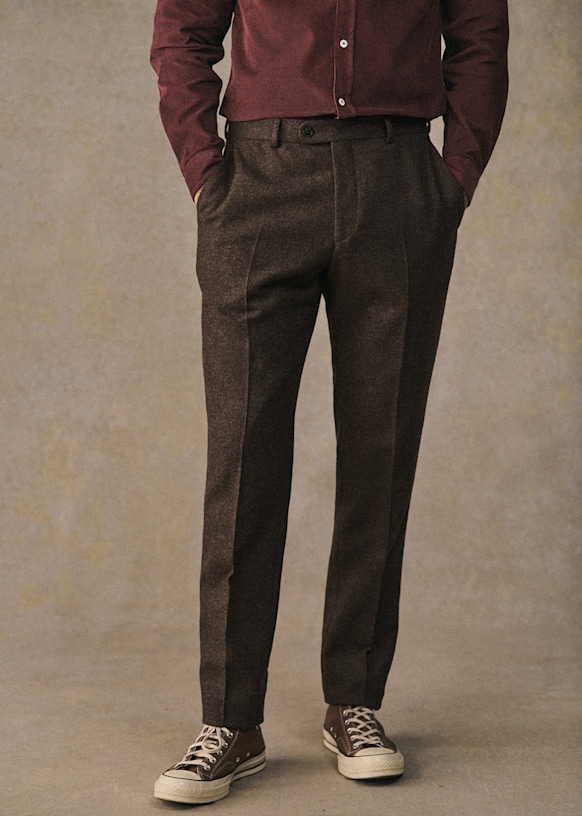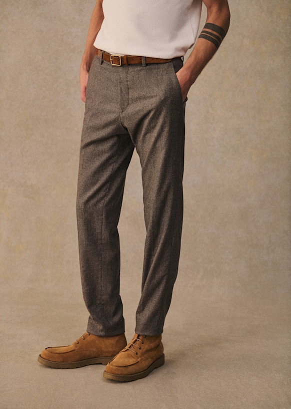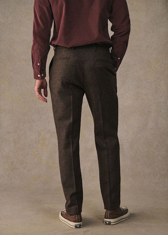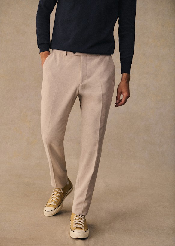 El diseño de este pantalón permite utilizarlo con sneakers para un estilo desenfadado o con zapatos para un look más vestido. La franela de lana italiana te ofrecerá una comodidad a toda prueba y una caída impecable.