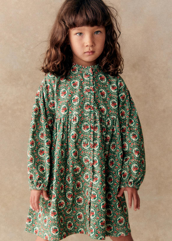 - Volantes en el cuello y a lo largo de la tapeta de botones