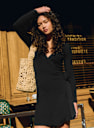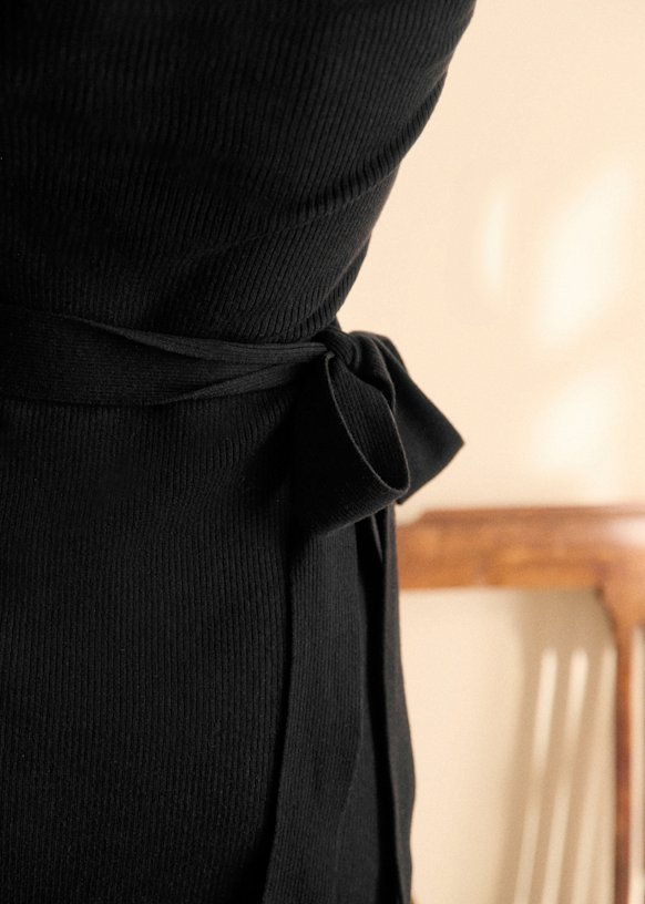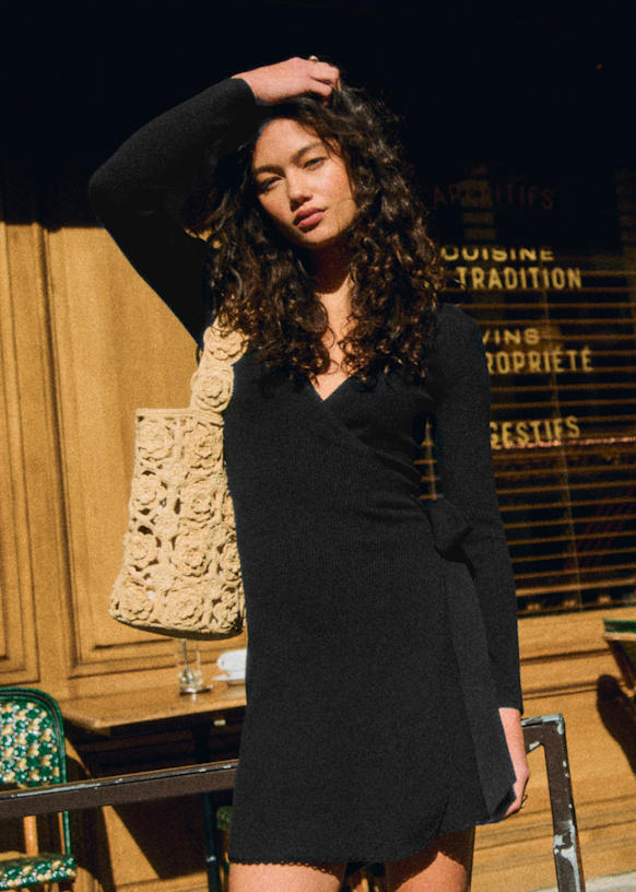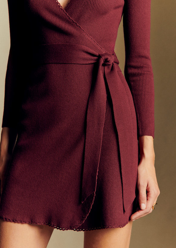 - Vestido corto ceñido de manga larga de lana merino y algodón orgánico