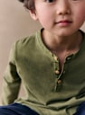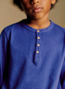 - Button placket on neckline